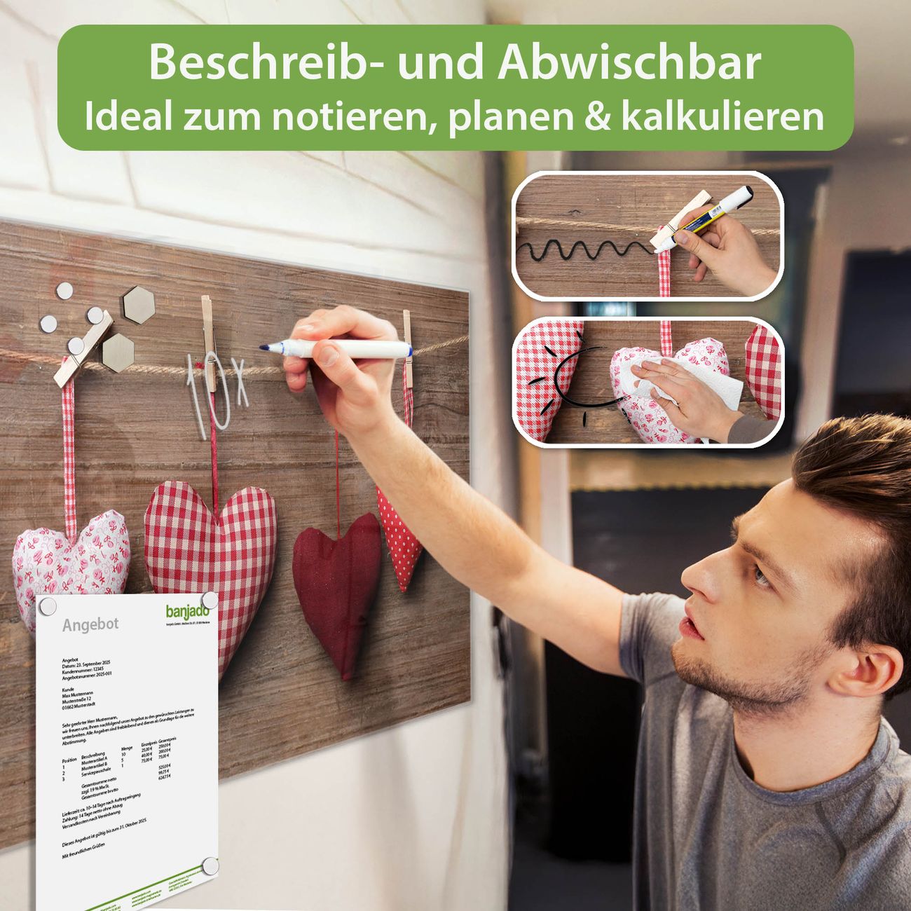 Jede Glas Magnettafel wird in unserer Werkstatt von Hand gefertigt und sorgfältig geprüft. So erhalten Sie ein echtes Qualitätsprodukt, das Funktion und Ästhetik perfekt vereint.?? Warum banjado?