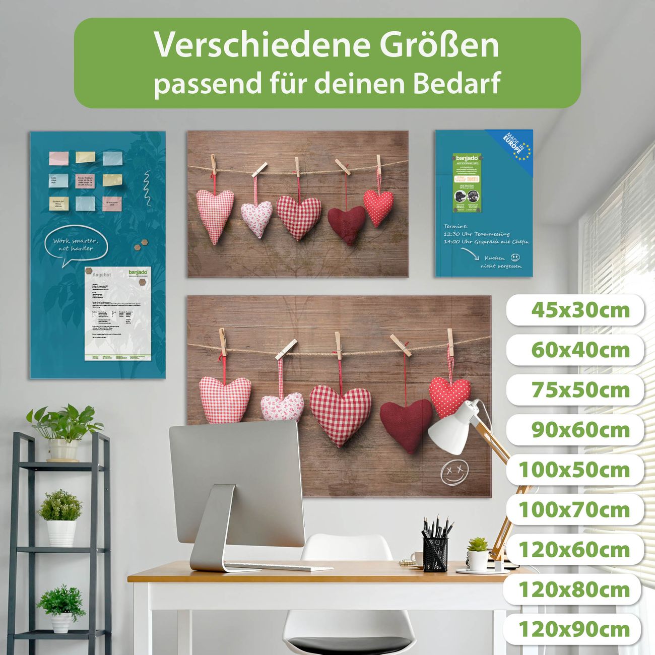 Jede Glas Magnettafel wird in unserer Werkstatt von Hand gefertigt und sorgfältig geprüft. So erhalten Sie ein echtes Qualitätsprodukt, das Funktion und Ästhetik perfekt vereint.?? Warum banjado?