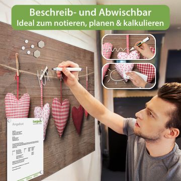 Auf der glatten Glasoberfläche lassen sich Termine, Rezepte oder Notizen ganz einfach mit Kreidestiften festhalten und rückstandslos entfernen. Starke Neodym-Magnete halten Ihre wichtigsten Erinnerungen sicher an Ort und Stelle. So entsteht Ihre ganz persönliche Ideenwand - jeden Tag neu.