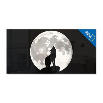Glas Magnettafel im Querformat Motiv Heulender Wolf SW