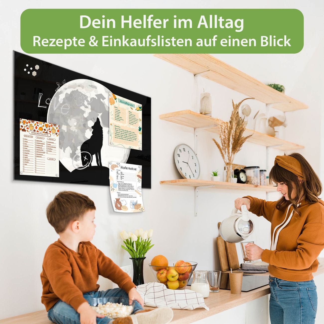 Auf der glatten Glasoberfläche lassen sich Termine, Rezepte oder Notizen ganz einfach mit Kreidestiften festhalten und rückstandslos entfernen. Starke Neodym-Magnete halten Ihre wichtigsten Erinnerungen sicher an Ort und Stelle. So entsteht Ihre ganz persönliche Ideenwand - jeden Tag neu.