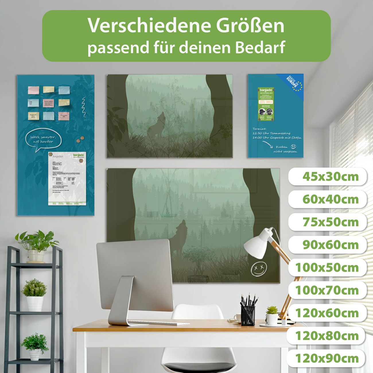 Jede Glas Magnettafel wird in unserer Werkstatt von Hand gefertigt und sorgfältig geprüft. So erhalten Sie ein echtes Qualitätsprodukt, das Funktion und Ästhetik perfekt vereint.?? Warum banjado?