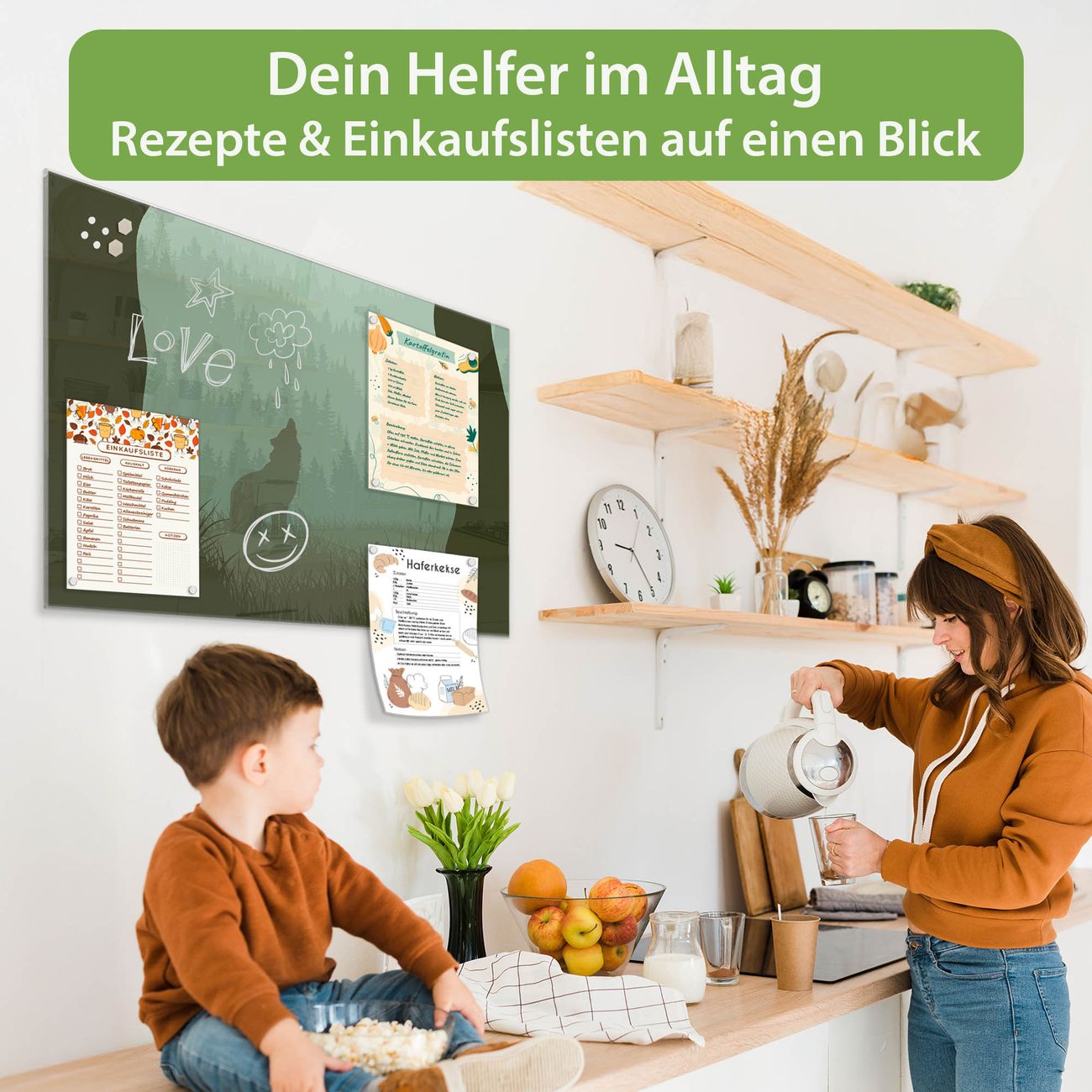 Auf der glatten Glasoberfläche lassen sich Termine, Rezepte oder Notizen ganz einfach mit Kreidestiften festhalten und rückstandslos entfernen. Starke Neodym-Magnete halten Ihre wichtigsten Erinnerungen sicher an Ort und Stelle. So entsteht Ihre ganz persönliche Ideenwand - jeden Tag neu.