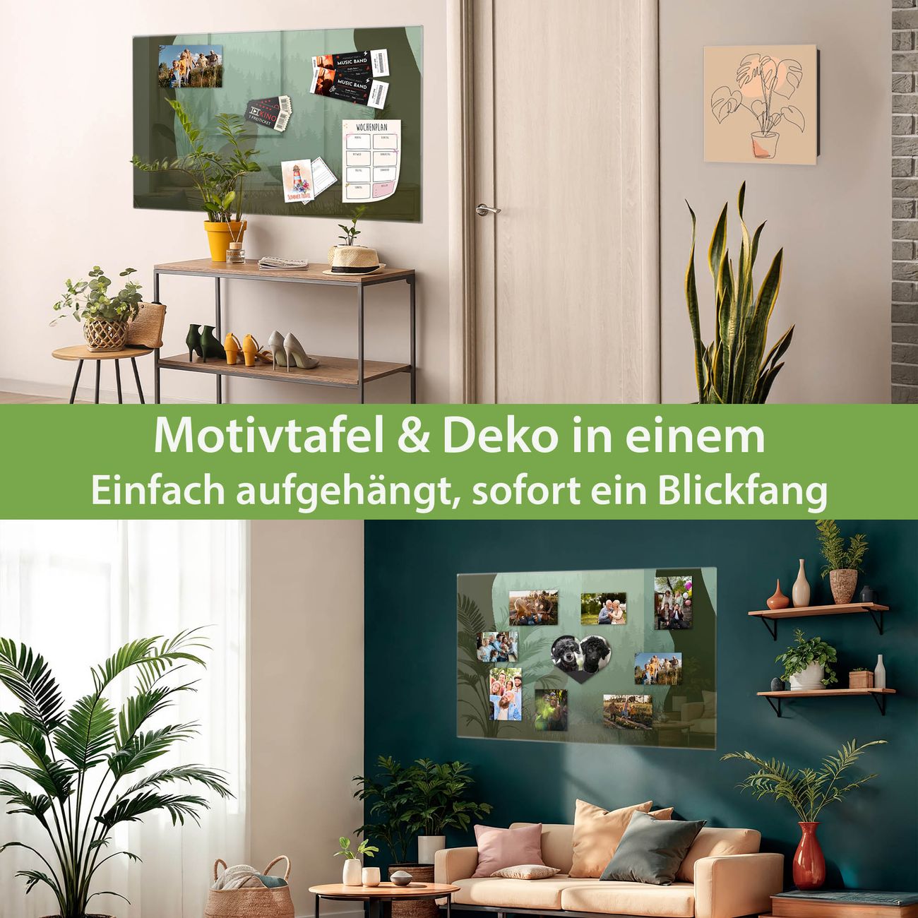 Dank der flachen Bauweise wirkt die Magnetwand fast schwebend an der Wand. Sie können sie mit Montagekleber elegant befestigen oder mit einem passenden Set klassisch verschrauben - beides sorgt für sicheren Halt und eine dezente Optik.