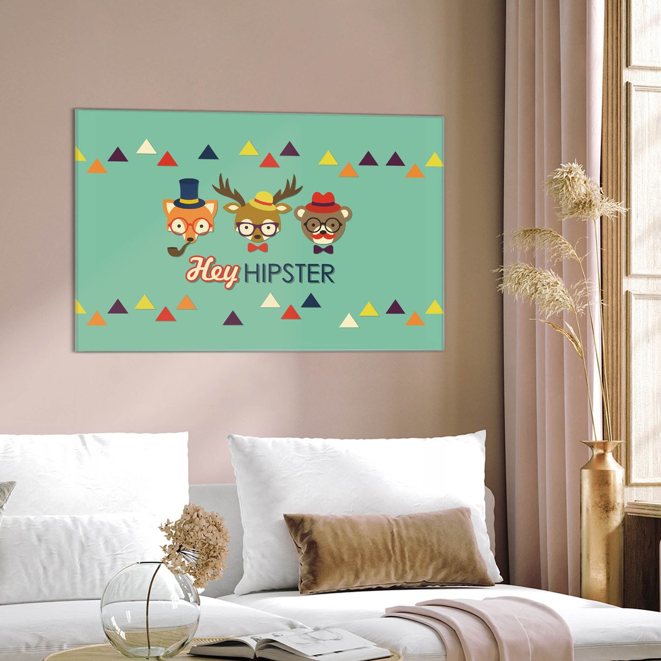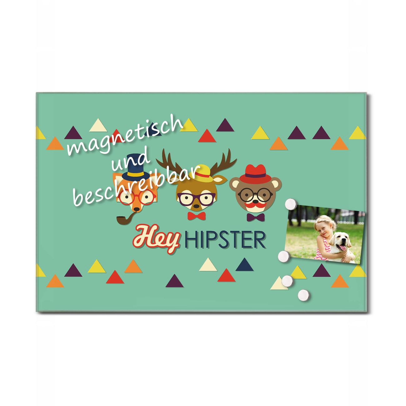 Glas Magnettafel im Querformat Hey Hipster