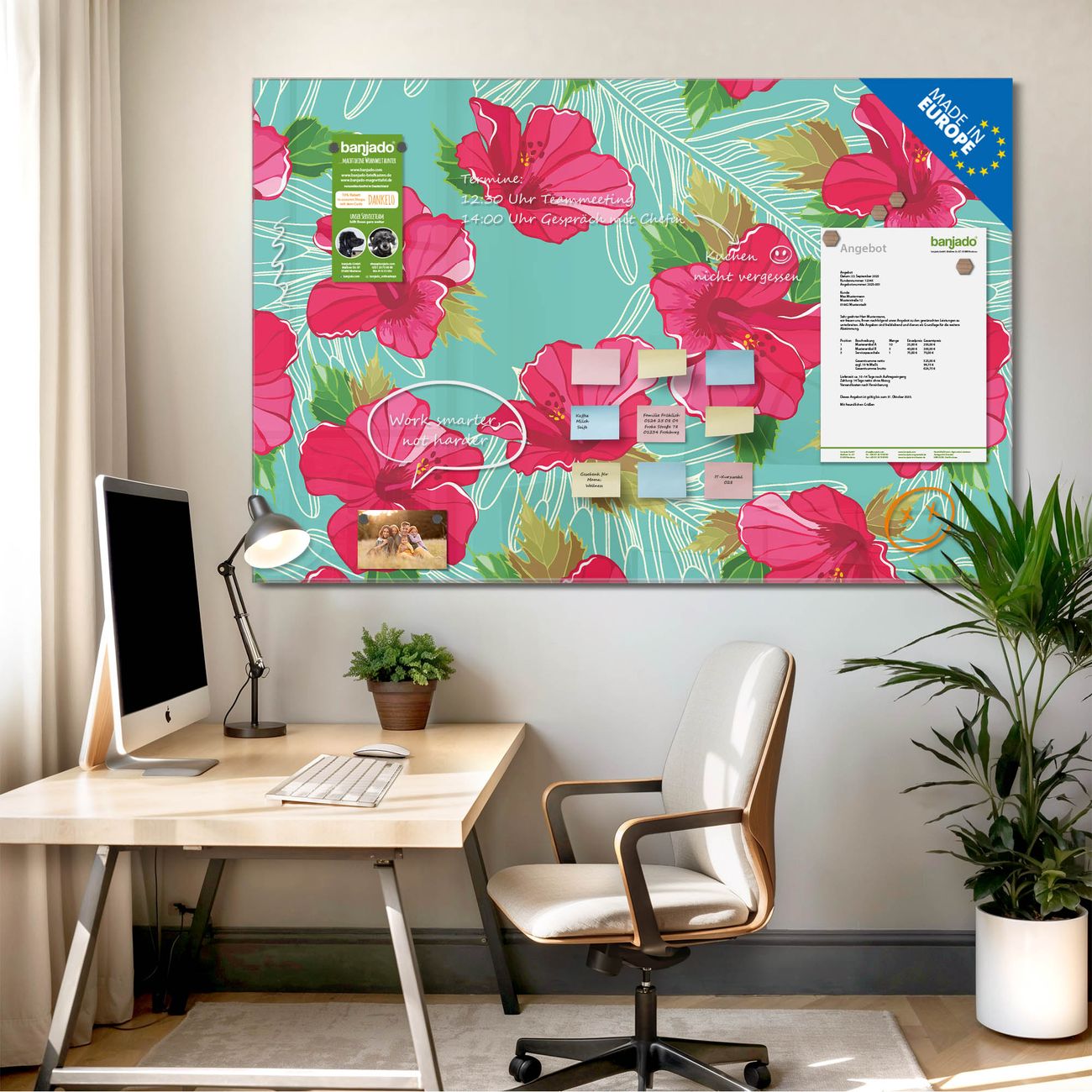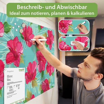 Die banjado Glas Magnettafel mit dem Motiv Motiv Hibiskus verbindet Funktionalität mit Stil. Sie ersetzt das Zettelchaos durch klare Strukturen und bringt dabei eine warme, natürliche Atmosphäre in Ihr Zuhause. Ob im Büro, in der Küche oder im Eingangsbereich - dieses Design-Board zieht Blicke an und sorgt für Ordnung mit Charakter.