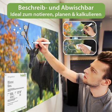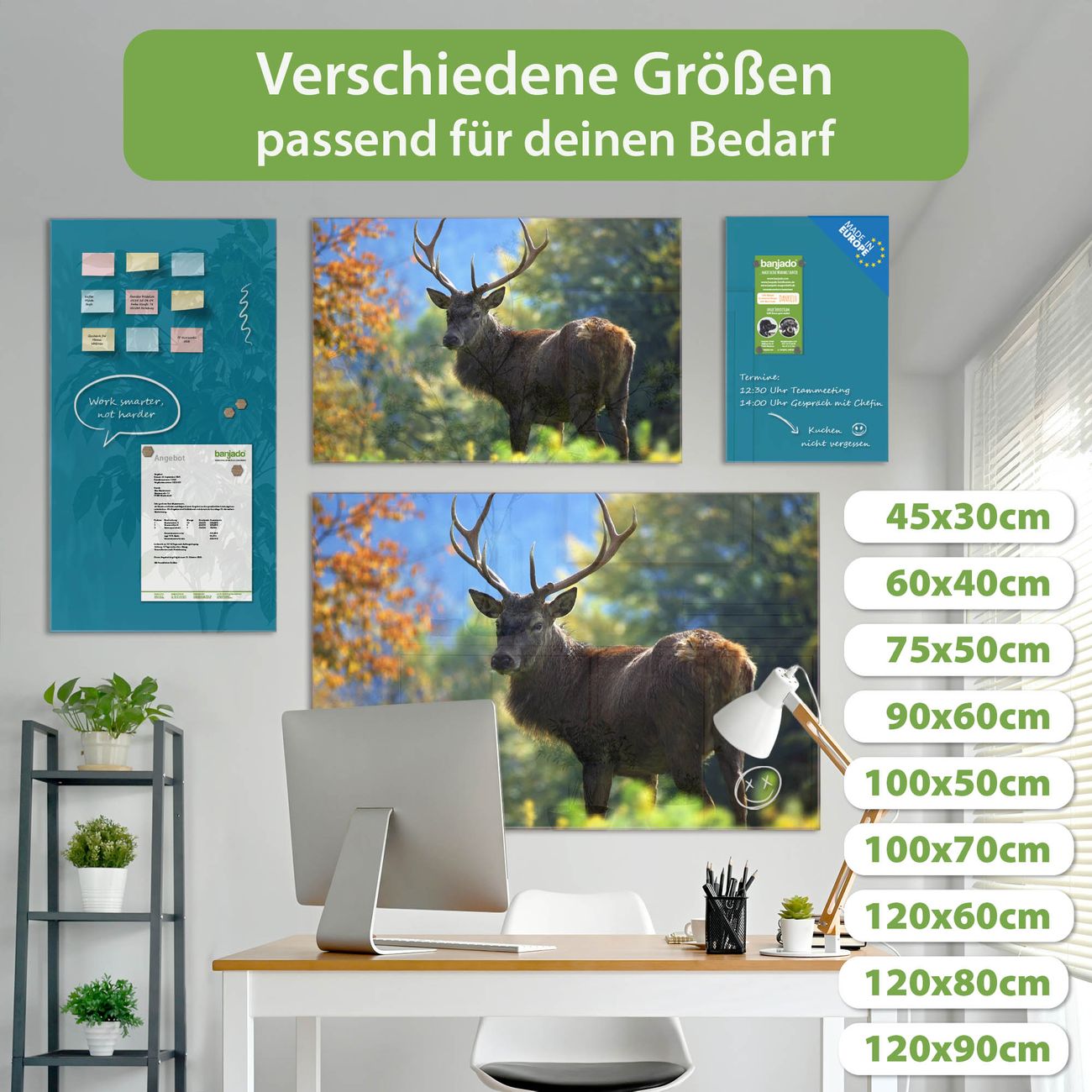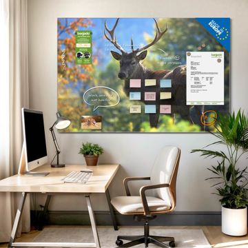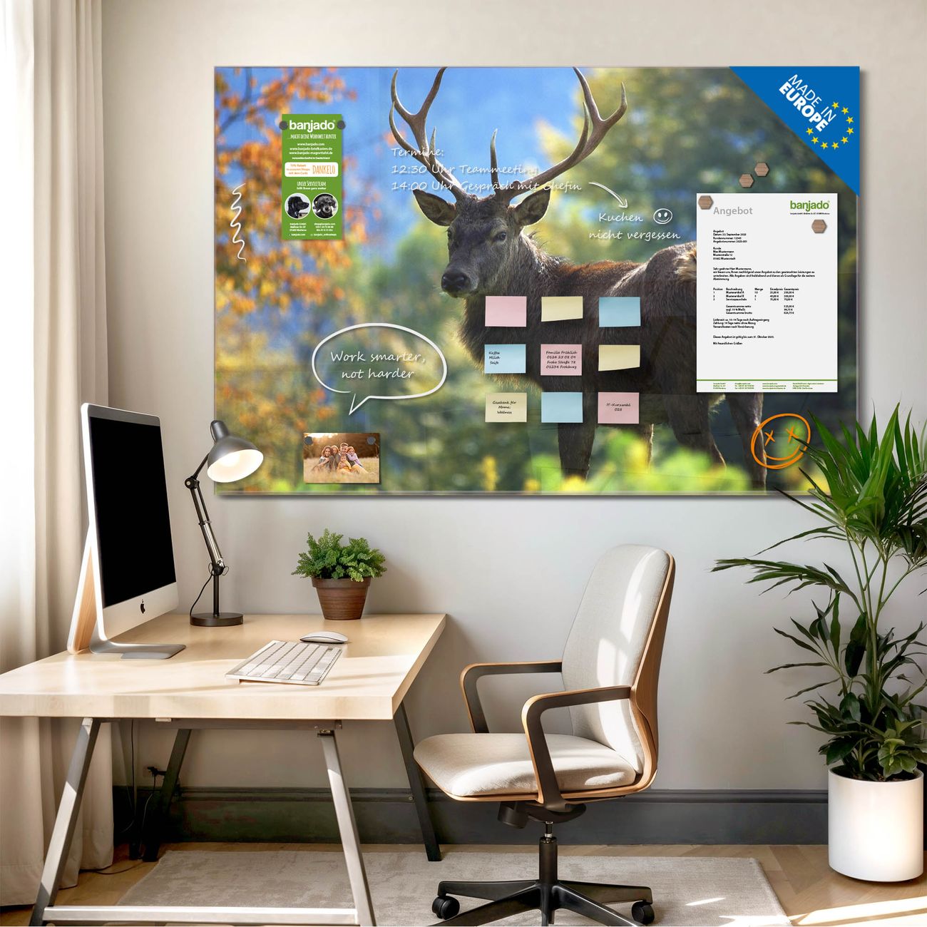 Die banjado Glas Magnettafel mit dem Motiv Motiv Hirsch verbindet Funktionalität mit Stil. Sie ersetzt das Zettelchaos durch klare Strukturen und bringt dabei eine warme, natürliche Atmosphäre in Ihr Zuhause. Ob im Büro, in der Küche oder im Eingangsbereich - dieses Design-Board zieht Blicke an und sorgt für Ordnung mit Charakter.