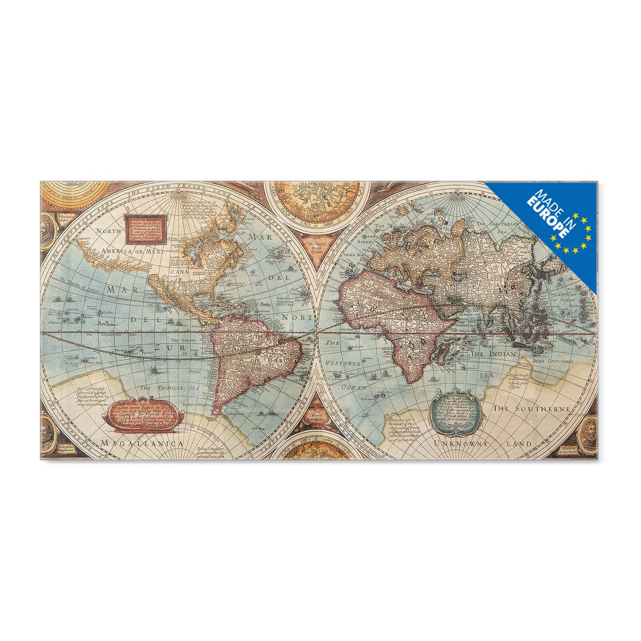 Glas Magnettafel im Querformat Motiv Historische Weltkarte