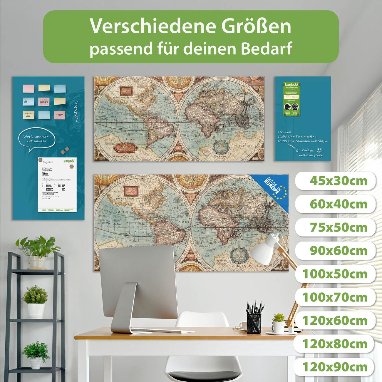 Ein Stück Design, das Ihren Alltag organisiert. Schreiben, heften, inspirieren - alles an einem Ort. Qualität, die man spürt. Montage leicht gemacht. Handwerk mit Herz - veredelt in Sachsen. Einzigartiges Design mit Motiv Motiv Historische Weltkarte Beschreibbare Glasoberfläche, leicht zu reinigen Starke Magnetkraft durch Stahlrückwand Inklusive 4 Neodym-Magneten Flexible Montageoptionen Handveredelt in Sachsen - Qualität, die bleibt