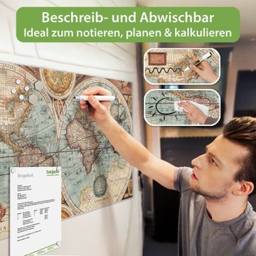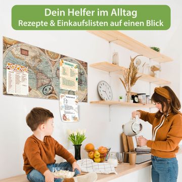 Die banjado Glas Magnettafel mit dem Motiv Motiv Historische Weltkarte verbindet Funktionalität mit Stil. Sie ersetzt das Zettelchaos durch klare Strukturen und bringt dabei eine warme, natürliche Atmosphäre in Ihr Zuhause. Ob im Büro, in der Küche oder im Eingangsbereich - dieses Design-Board zieht Blicke an und sorgt für Ordnung mit Charakter.