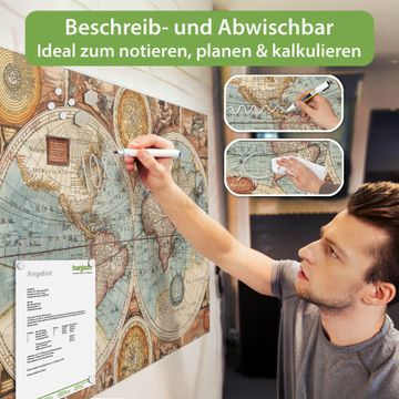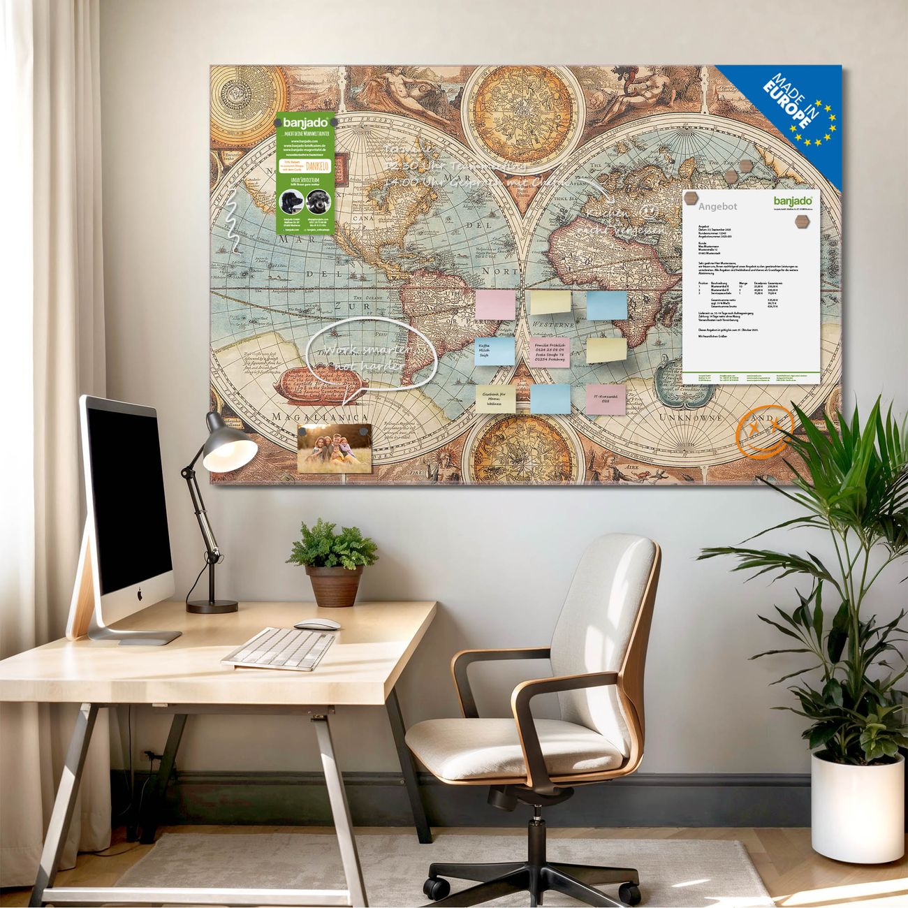 Die banjado Glas Magnettafel mit dem Motiv Motiv Historische Weltkarte verbindet Funktionalität mit Stil. Sie ersetzt das Zettelchaos durch klare Strukturen und bringt dabei eine warme, natürliche Atmosphäre in Ihr Zuhause. Ob im Büro, in der Küche oder im Eingangsbereich - dieses Design-Board zieht Blicke an und sorgt für Ordnung mit Charakter.