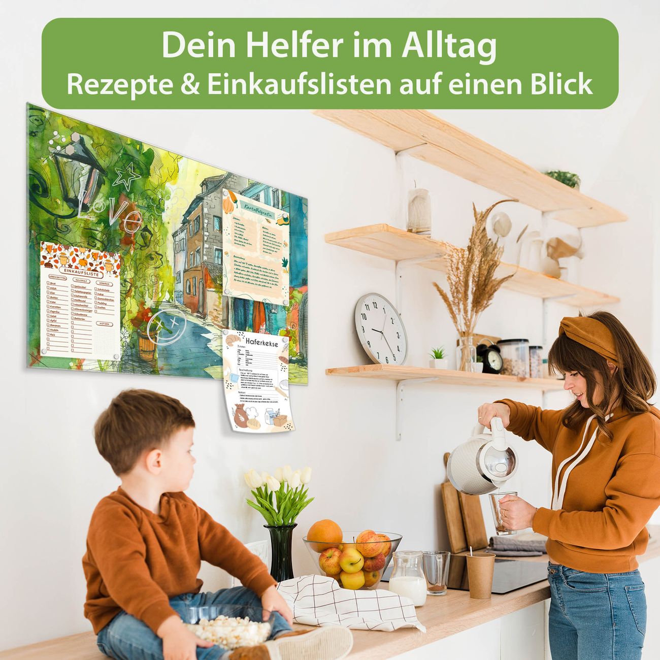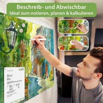 Auf der glatten Glasoberfläche lassen sich Termine, Rezepte oder Notizen ganz einfach mit Kreidestiften festhalten und rückstandslos entfernen. Starke Neodym-Magnete halten Ihre wichtigsten Erinnerungen sicher an Ort und Stelle. So entsteht Ihre ganz persönliche Ideenwand - jeden Tag neu.