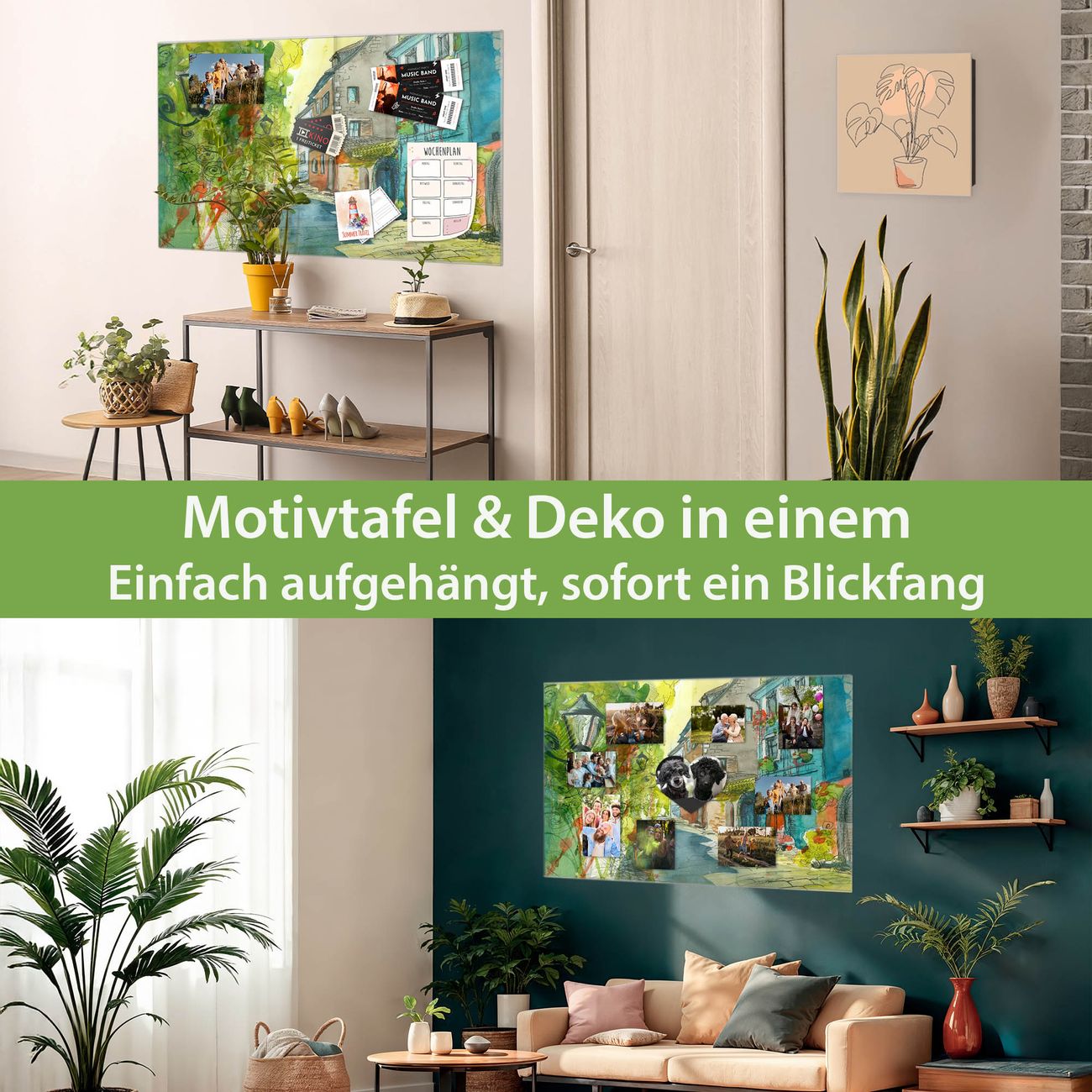 Dank der flachen Bauweise wirkt die Magnetwand fast schwebend an der Wand. Sie können sie mit Montagekleber elegant befestigen oder mit einem passenden Set klassisch verschrauben - beides sorgt für sicheren Halt und eine dezente Optik.