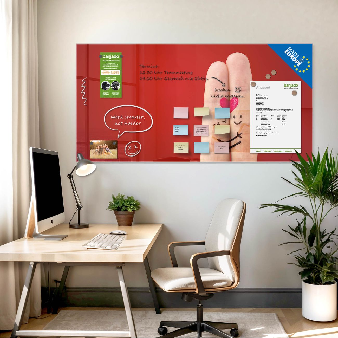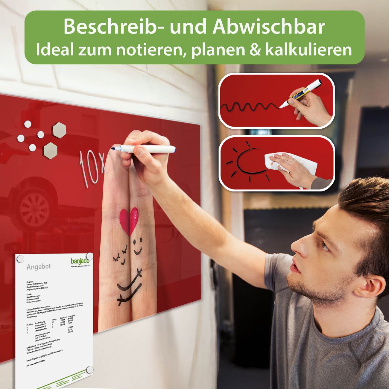 Jede Glas Magnettafel wird in unserer Werkstatt von Hand gefertigt und sorgfältig geprüft. So erhalten Sie ein echtes Qualitätsprodukt, das Funktion und Ästhetik perfekt vereint.?? Warum banjado?