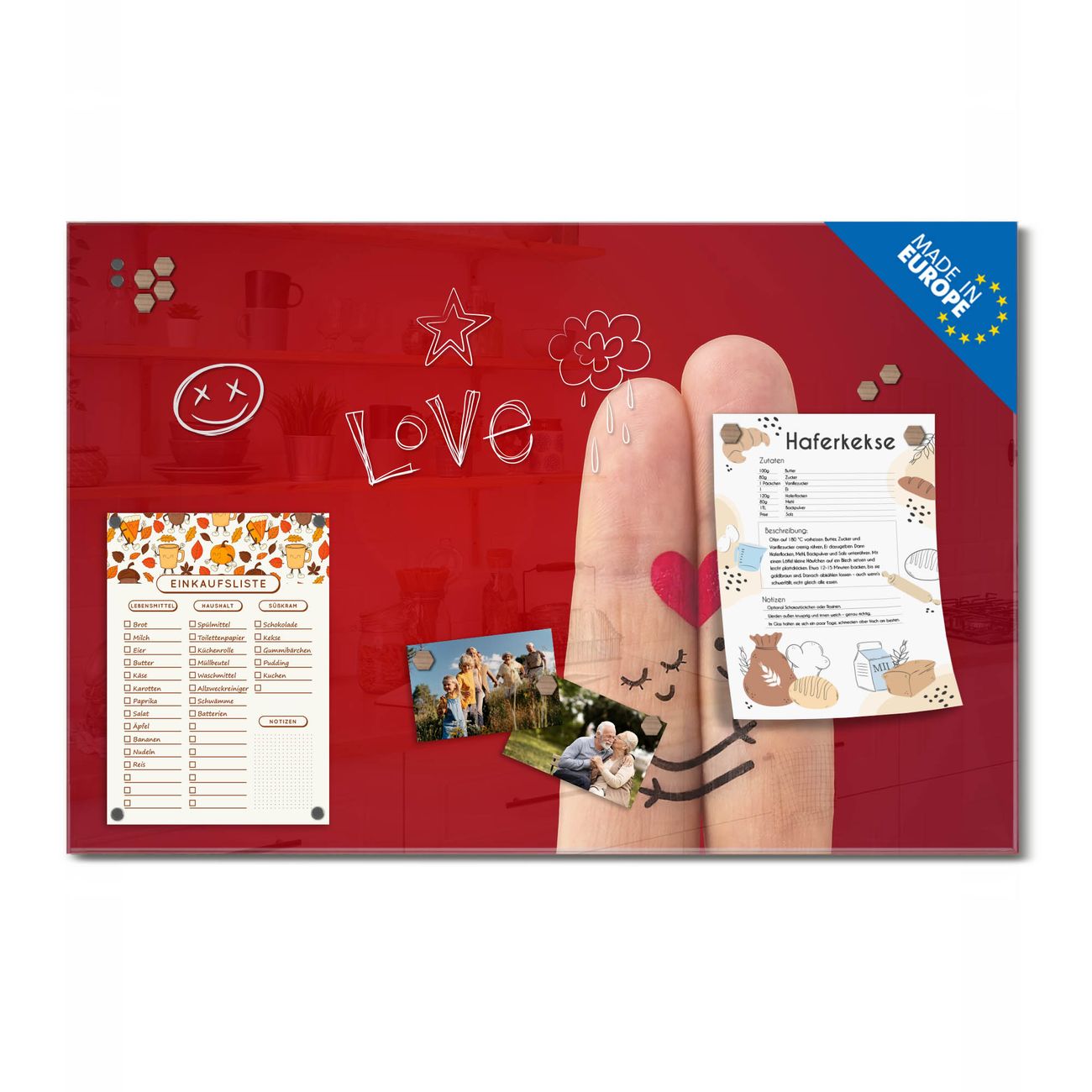 Ein Stück Design, das Ihren Alltag organisiert. Schreiben, heften, inspirieren - alles an einem Ort. Qualität, die man spürt. Montage leicht gemacht. Handwerk mit Herz - veredelt in Sachsen. Einzigartiges Design mit Motiv Motiv Hold Me Tight Beschreibbare Glasoberfläche, leicht zu reinigen Starke Magnetkraft durch Stahlrückwand Inklusive 4 Neodym-Magneten Flexible Montageoptionen Handveredelt in Sachsen - Qualität, die bleibt