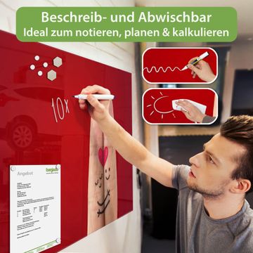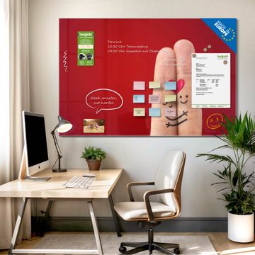 Auf der glatten Glasoberfläche lassen sich Termine, Rezepte oder Notizen ganz einfach mit Kreidestiften festhalten und rückstandslos entfernen. Starke Neodym-Magnete halten Ihre wichtigsten Erinnerungen sicher an Ort und Stelle. So entsteht Ihre ganz persönliche Ideenwand - jeden Tag neu.
