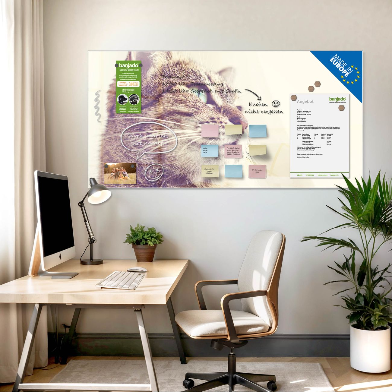 Jede Glas Magnettafel wird in unserer Werkstatt von Hand gefertigt und sorgfältig geprüft. So erhalten Sie ein echtes Qualitätsprodukt, das Funktion und Ästhetik perfekt vereint.?? Warum banjado?