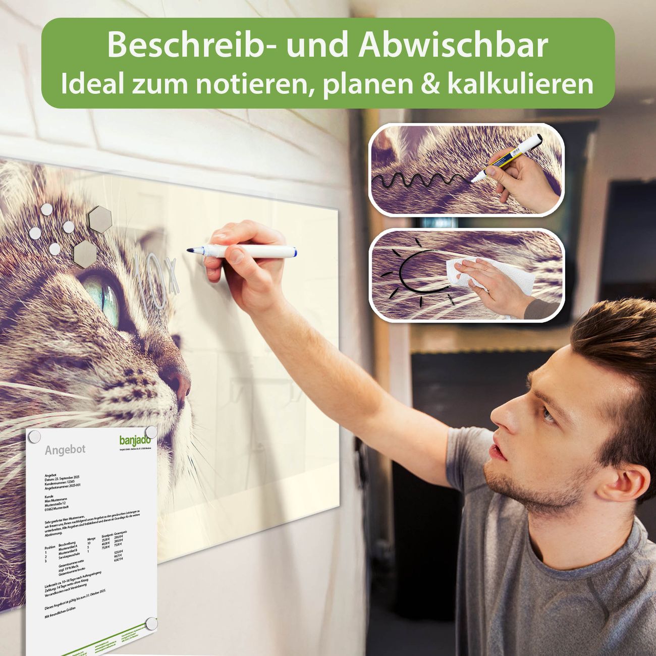 Bitte beachten Sie, dass ausschliessliche spezielle Magnete an der Glastafel haften. Wir empfehlen banjado Neodym Magnete, diese sind durch uns auf Wirksamkeit geprüft.
