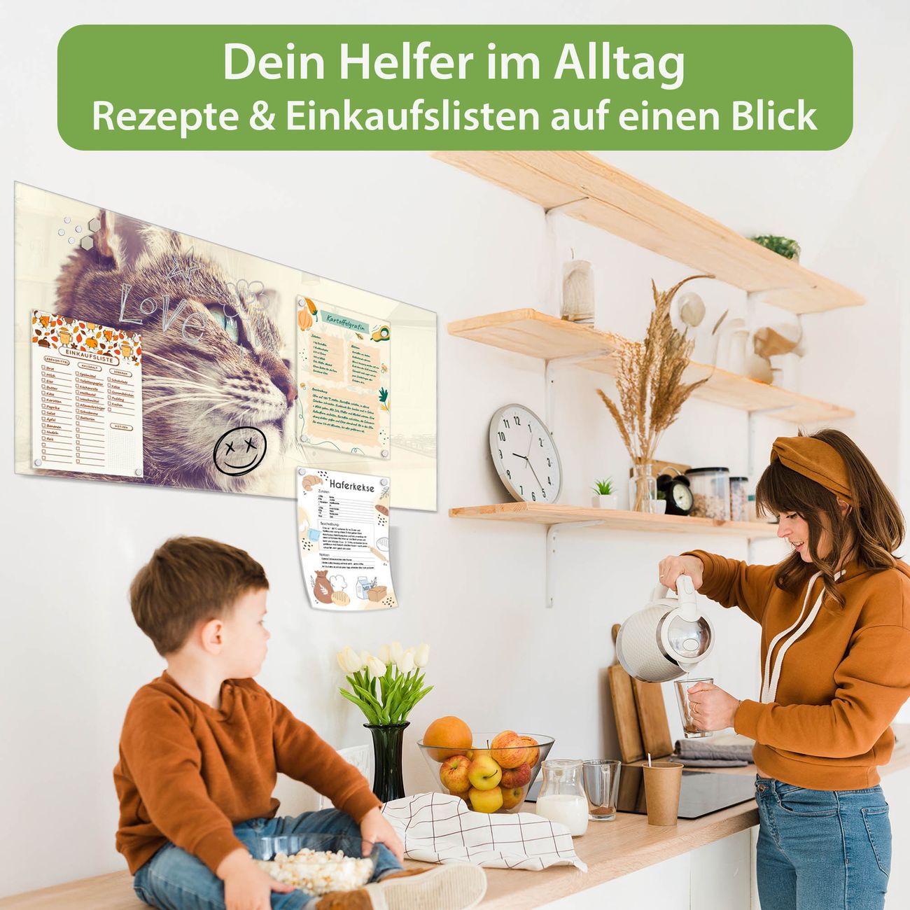 Auf der glatten Glasoberfläche lassen sich Termine, Rezepte oder Notizen ganz einfach mit Kreidestiften festhalten und rückstandslos entfernen. Starke Neodym-Magnete halten Ihre wichtigsten Erinnerungen sicher an Ort und Stelle. So entsteht Ihre ganz persönliche Ideenwand - jeden Tag neu.