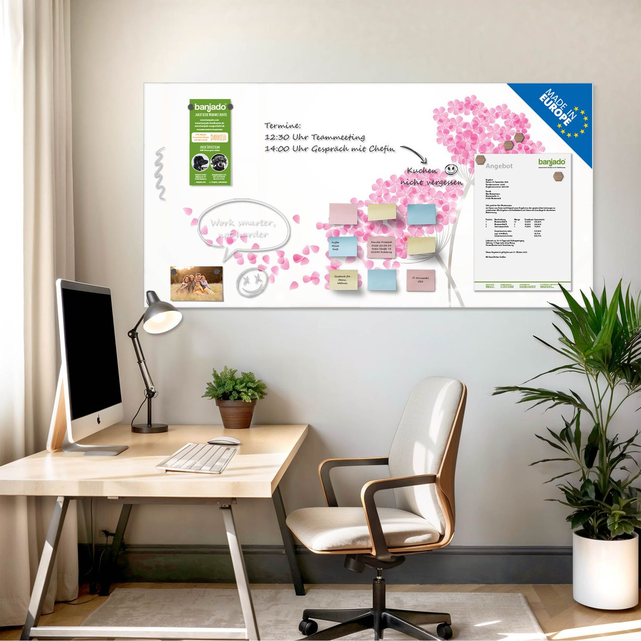 Jede Glas Magnettafel wird in unserer Werkstatt von Hand gefertigt und sorgfältig geprüft. So erhalten Sie ein echtes Qualitätsprodukt, das Funktion und Ästhetik perfekt vereint.?? Warum banjado?