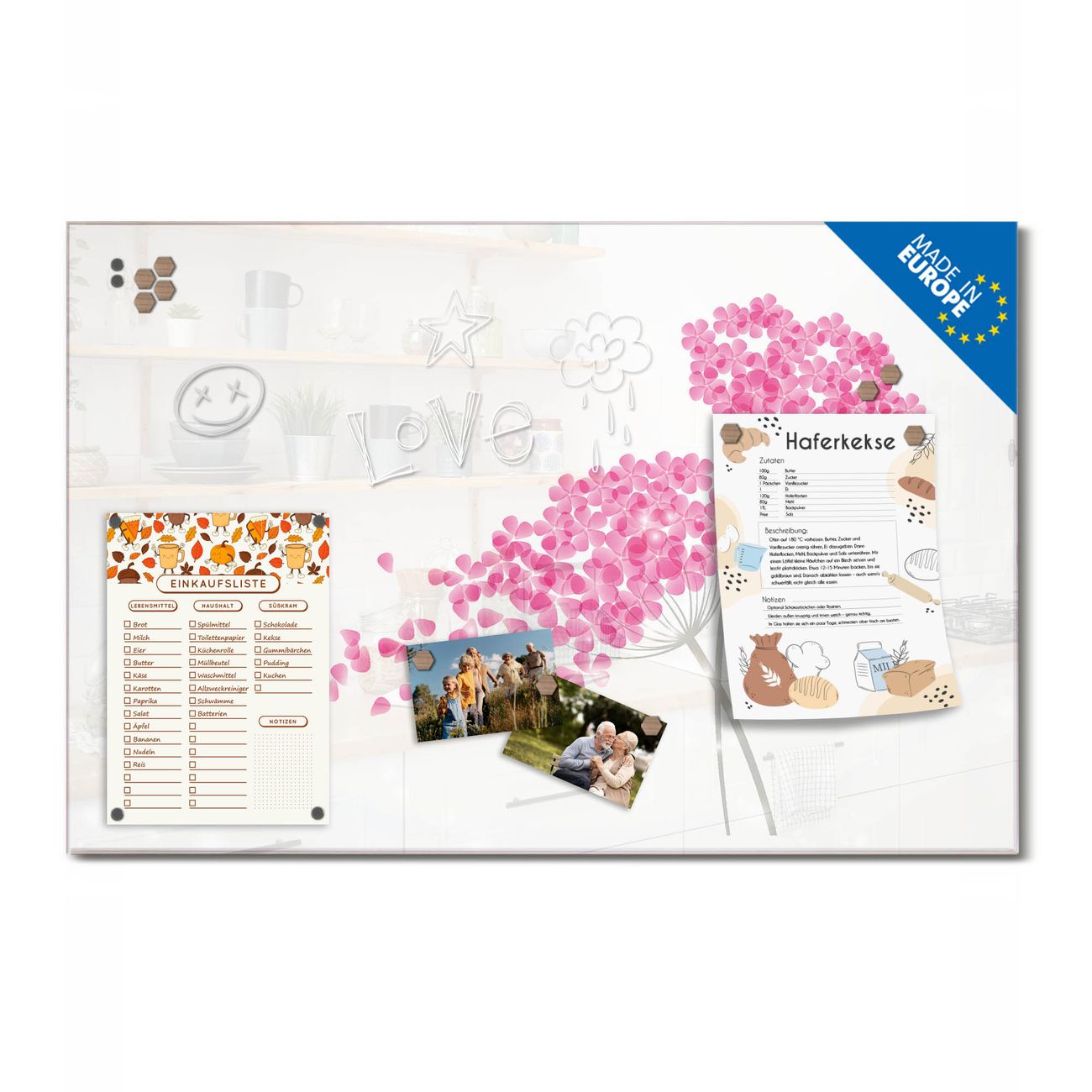 Auf der glatten Glasoberfläche lassen sich Termine, Rezepte oder Notizen ganz einfach mit Kreidestiften festhalten und rückstandslos entfernen. Starke Neodym-Magnete halten Ihre wichtigsten Erinnerungen sicher an Ort und Stelle. So entsteht Ihre ganz persönliche Ideenwand - jeden Tag neu.