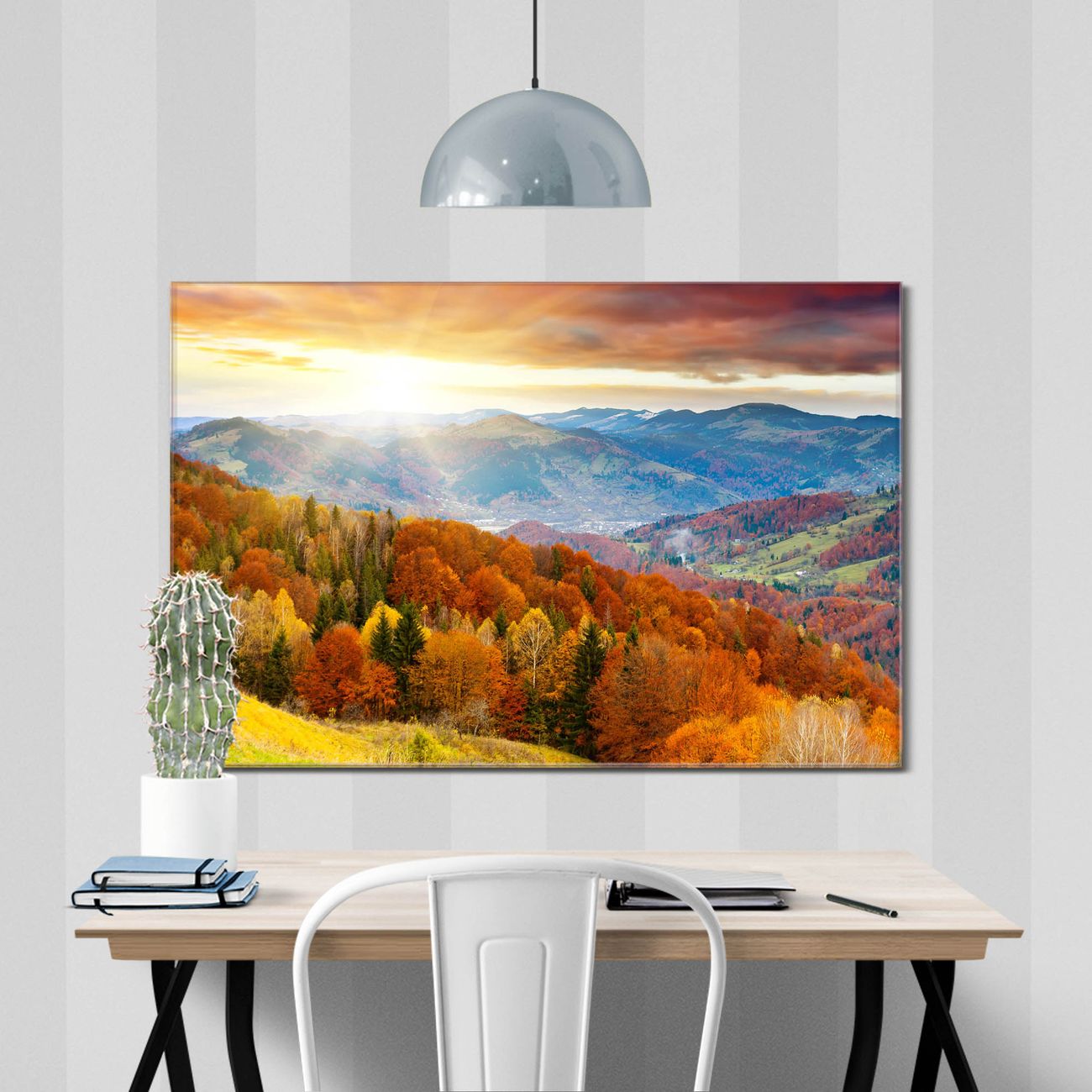 Glas Magnettafel im Querformat Hügel Im Herbst