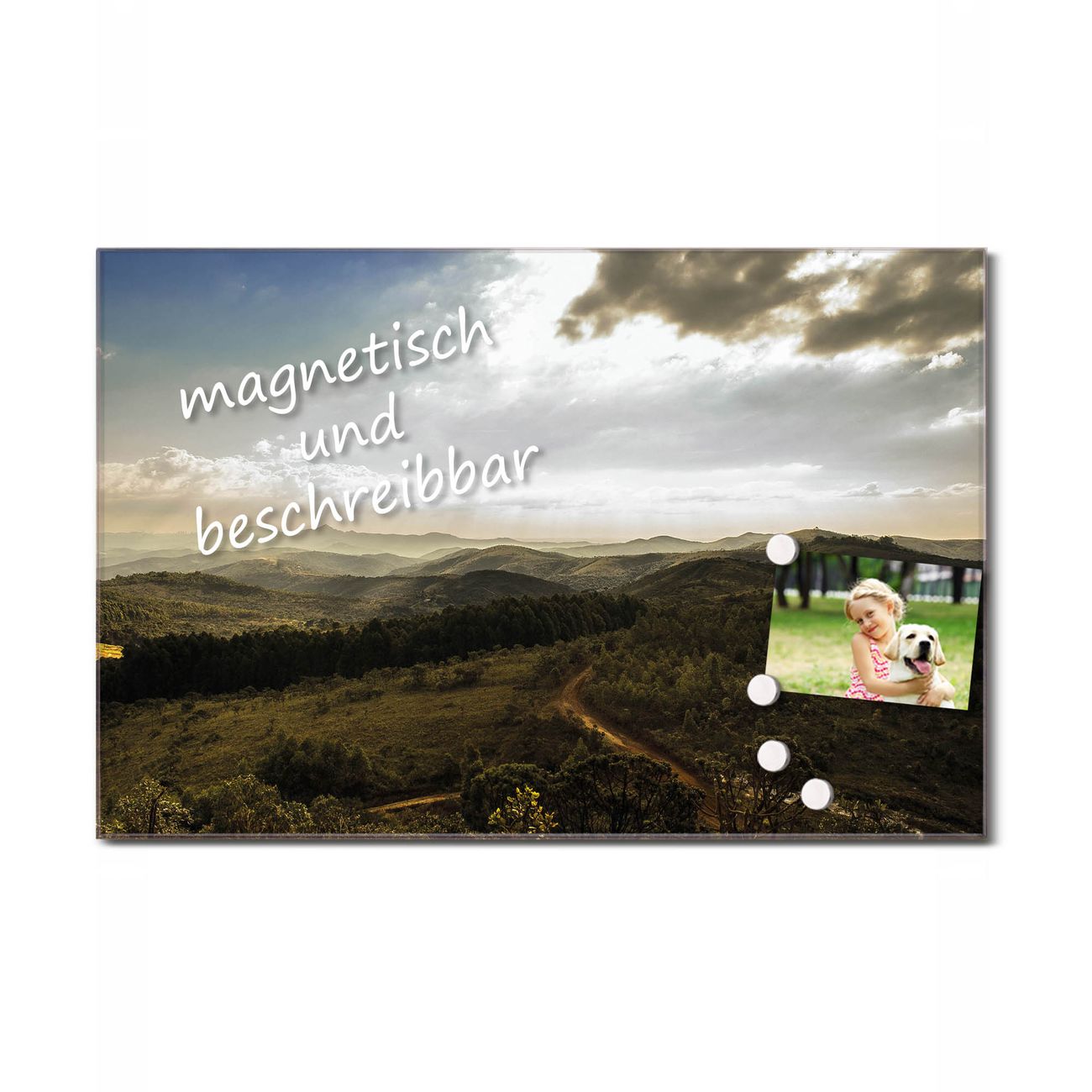 Glas Magnettafel im Querformat Hügellandschaft