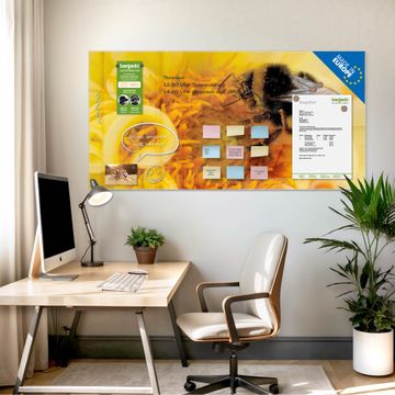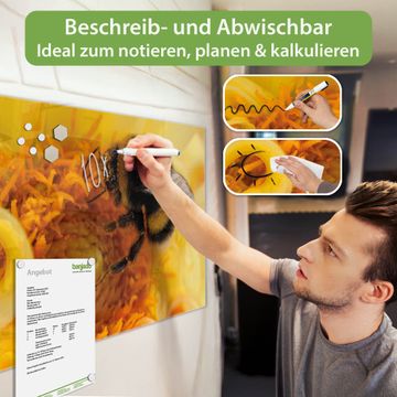Die banjado Glas Magnettafel mit dem Motiv Motiv Hummel verbindet Funktionalität mit Stil. Sie ersetzt das Zettelchaos durch klare Strukturen und bringt dabei eine warme, natürliche Atmosphäre in Ihr Zuhause. Ob im Büro, in der Küche oder im Eingangsbereich - dieses Design-Board zieht Blicke an und sorgt für Ordnung mit Charakter.