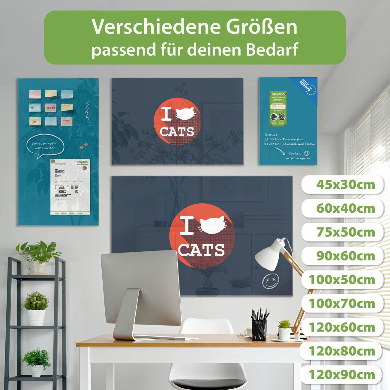 Jede Glas Magnettafel wird in unserer Werkstatt von Hand gefertigt und sorgfältig geprüft. So erhalten Sie ein echtes Qualitätsprodukt, das Funktion und Ästhetik perfekt vereint.?? Warum banjado?
