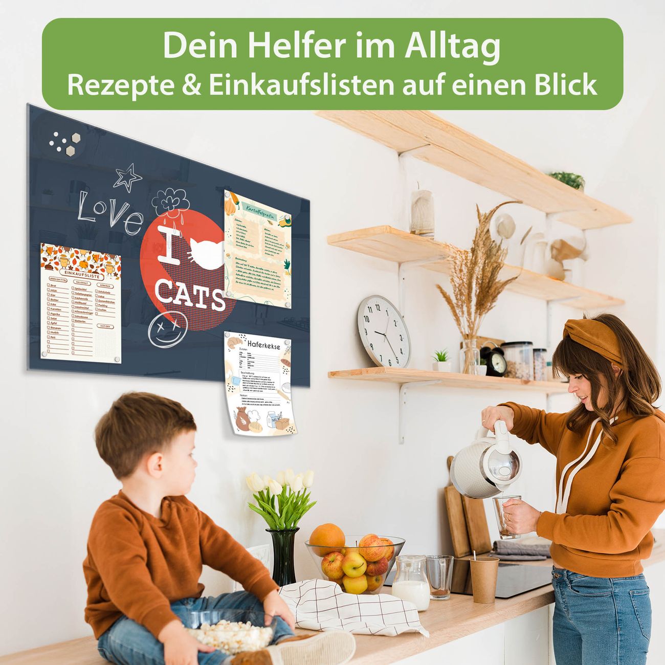 Die banjado Glas Magnettafel mit dem Motiv Motiv I Love Cats verbindet Funktionalität mit Stil. Sie ersetzt das Zettelchaos durch klare Strukturen und bringt dabei eine warme, natürliche Atmosphäre in Ihr Zuhause. Ob im Büro, in der Küche oder im Eingangsbereich - dieses Design-Board zieht Blicke an und sorgt für Ordnung mit Charakter.