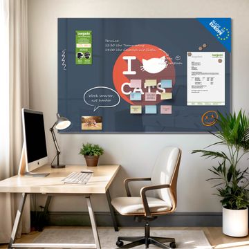 Auf der glatten Glasoberfläche lassen sich Termine, Rezepte oder Notizen ganz einfach mit Kreidestiften festhalten und rückstandslos entfernen. Starke Neodym-Magnete halten Ihre wichtigsten Erinnerungen sicher an Ort und Stelle. So entsteht Ihre ganz persönliche Ideenwand - jeden Tag neu.