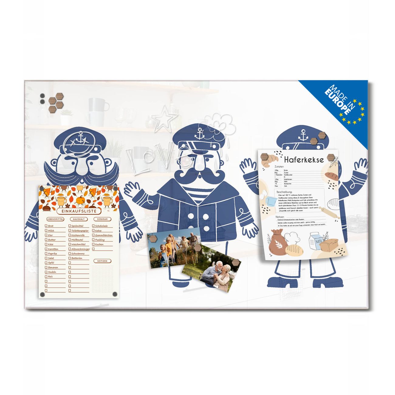 Ein Stück Design, das Ihren Alltag organisiert. Schreiben, heften, inspirieren - alles an einem Ort. Qualität, die man spürt. Montage leicht gemacht. Handwerk mit Herz - veredelt in Sachsen. Einzigartiges Design mit Motiv Motiv I Love Sea Beschreibbare Glasoberfläche, leicht zu reinigen Starke Magnetkraft durch Stahlrückwand Inklusive 4 Neodym-Magneten Flexible Montageoptionen Handveredelt in Sachsen - Qualität, die bleibt