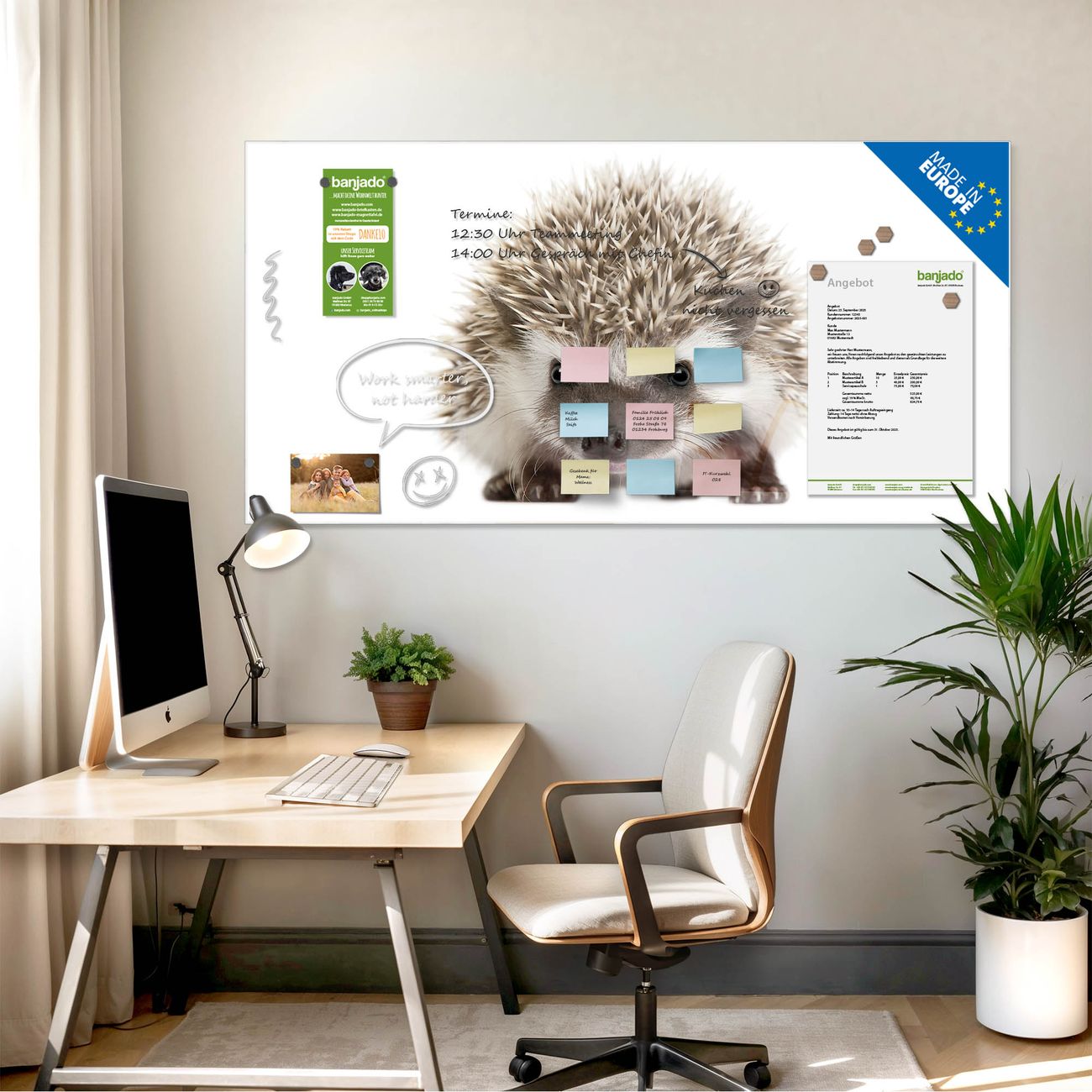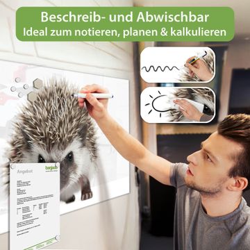 Die banjado Glas Magnettafel mit dem Motiv Motiv Igel verbindet Funktionalität mit Stil. Sie ersetzt das Zettelchaos durch klare Strukturen und bringt dabei eine warme, natürliche Atmosphäre in Ihr Zuhause. Ob im Büro, in der Küche oder im Eingangsbereich - dieses Design-Board zieht Blicke an und sorgt für Ordnung mit Charakter.