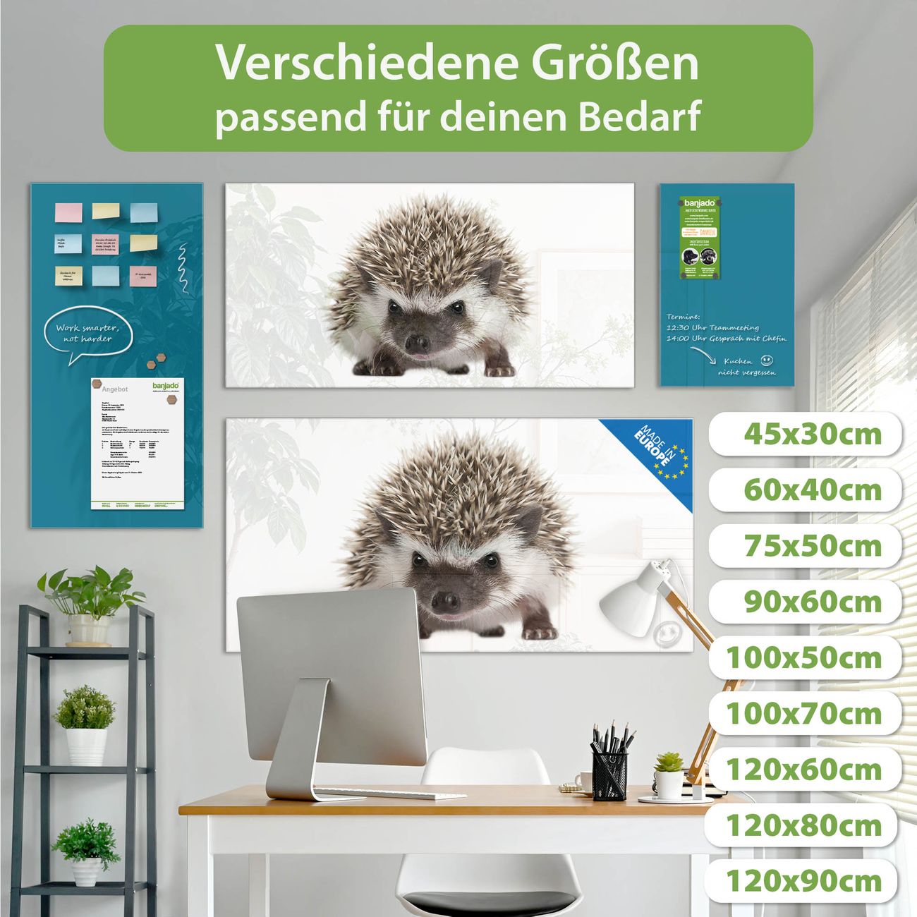 Ein Stück Design, das Ihren Alltag organisiert. Schreiben, heften, inspirieren - alles an einem Ort. Qualität, die man spürt. Montage leicht gemacht. Handwerk mit Herz - veredelt in Sachsen. Einzigartiges Design mit Motiv Motiv Igel Beschreibbare Glasoberfläche, leicht zu reinigen Starke Magnetkraft durch Stahlrückwand Inklusive 4 Neodym-Magneten Flexible Montageoptionen Handveredelt in Sachsen - Qualität, die bleibt