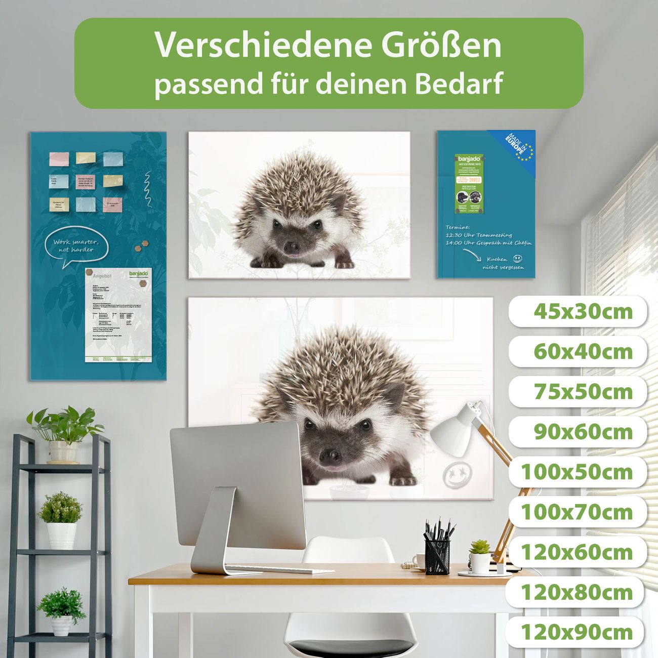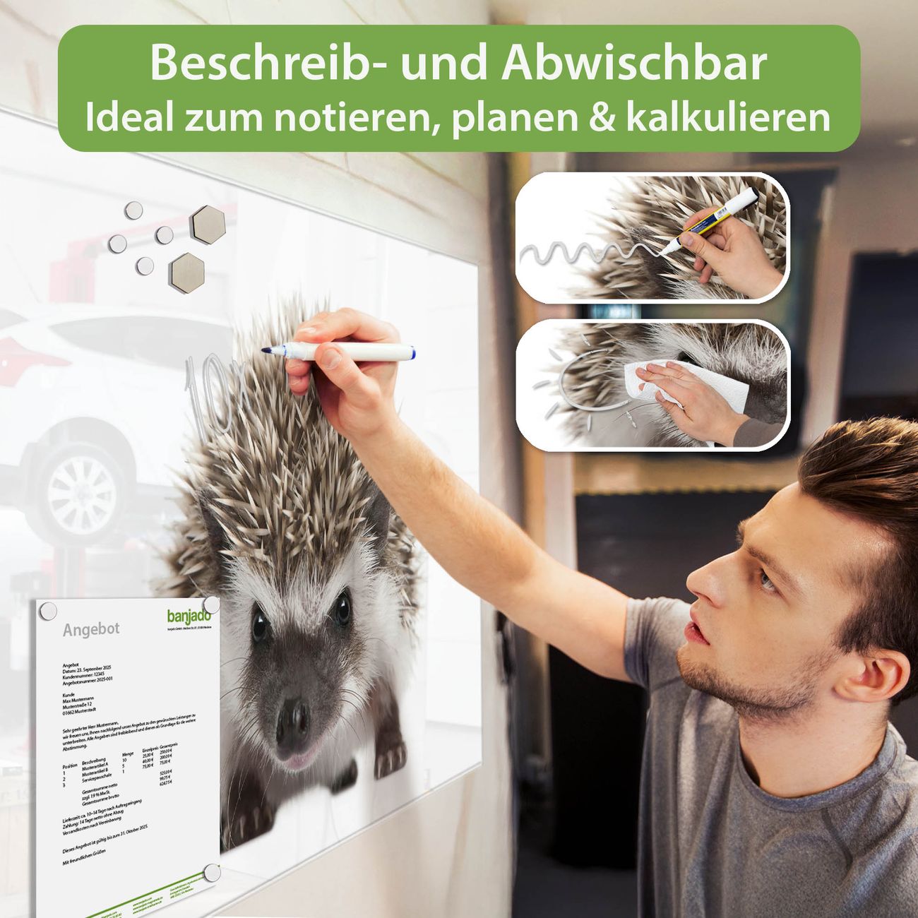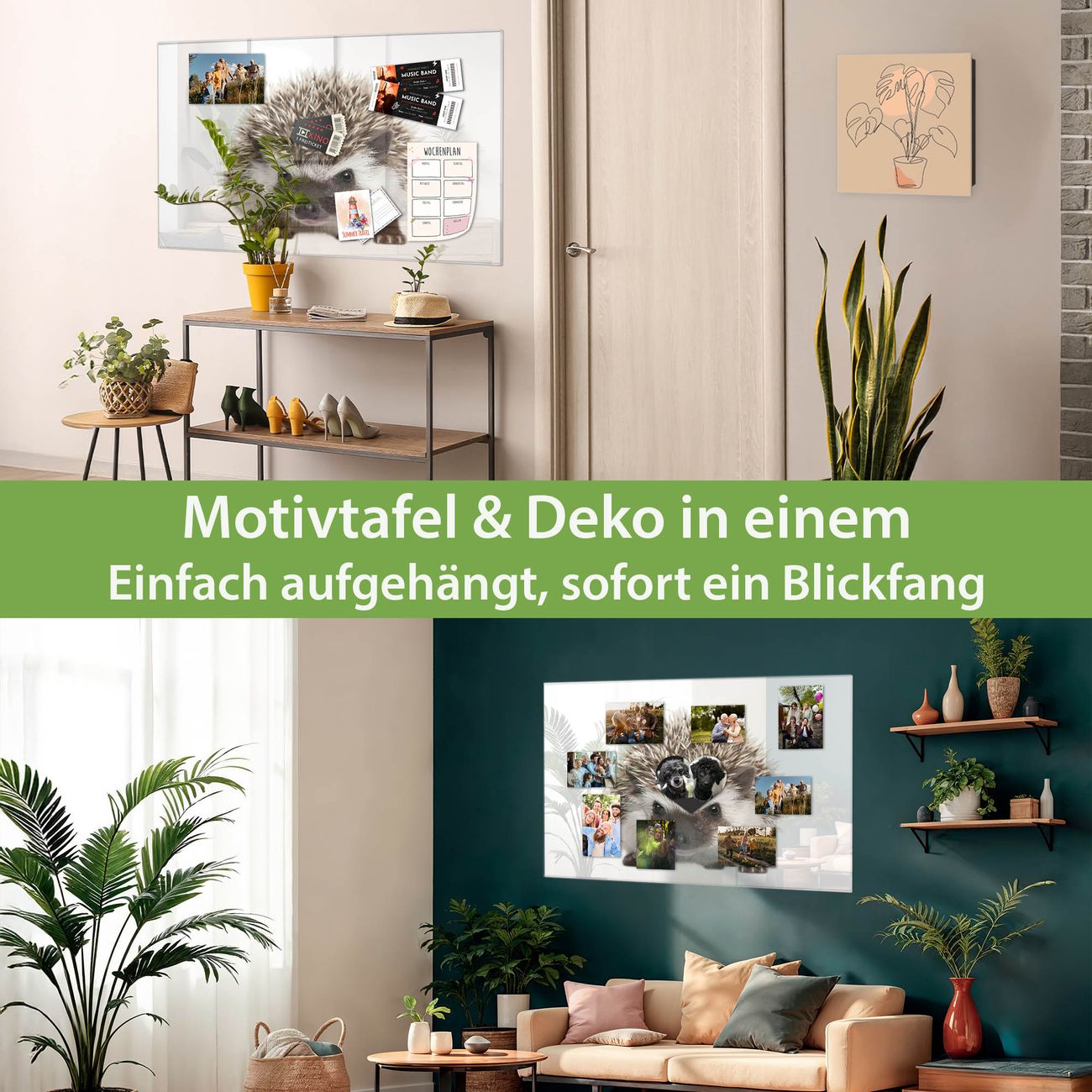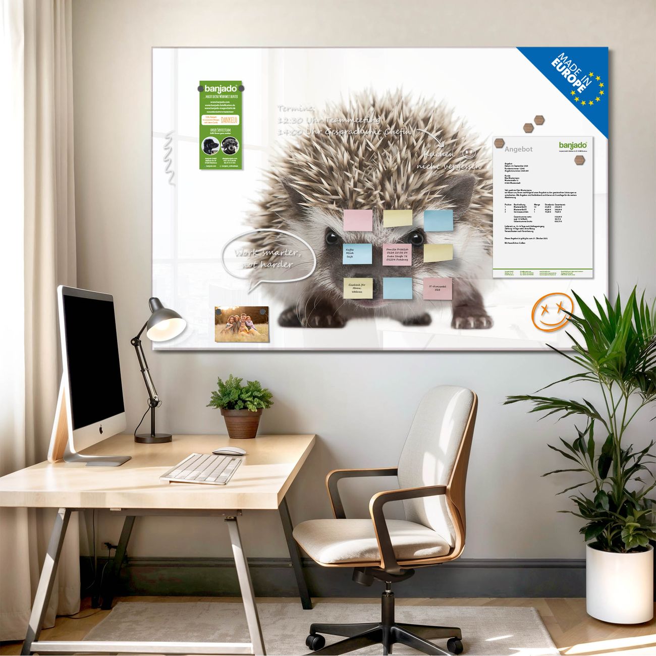 Die banjado Glas Magnettafel mit dem Motiv Motiv Igel verbindet Funktionalität mit Stil. Sie ersetzt das Zettelchaos durch klare Strukturen und bringt dabei eine warme, natürliche Atmosphäre in Ihr Zuhause. Ob im Büro, in der Küche oder im Eingangsbereich - dieses Design-Board zieht Blicke an und sorgt für Ordnung mit Charakter.