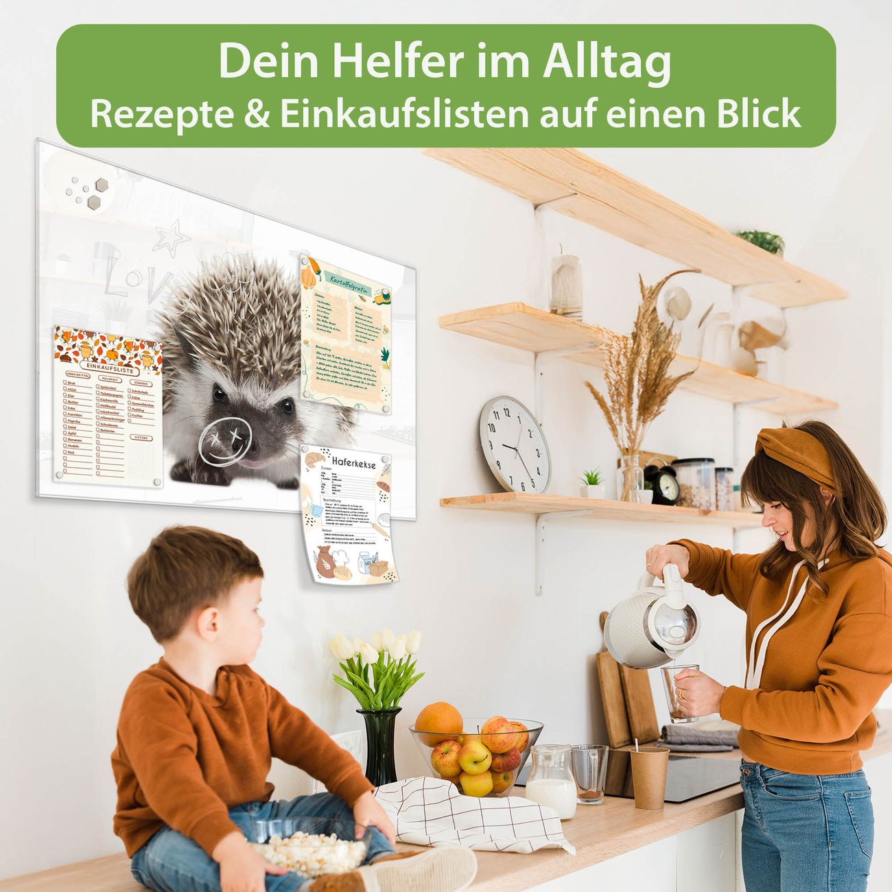 Ein Stück Design, das Ihren Alltag organisiert. Schreiben, heften, inspirieren - alles an einem Ort. Qualität, die man spürt. Montage leicht gemacht. Handwerk mit Herz - veredelt in Sachsen. Einzigartiges Design mit Motiv Motiv Igel Beschreibbare Glasoberfläche, leicht zu reinigen Starke Magnetkraft durch Stahlrückwand Inklusive 4 Neodym-Magneten Flexible Montageoptionen Handveredelt in Sachsen - Qualität, die bleibt