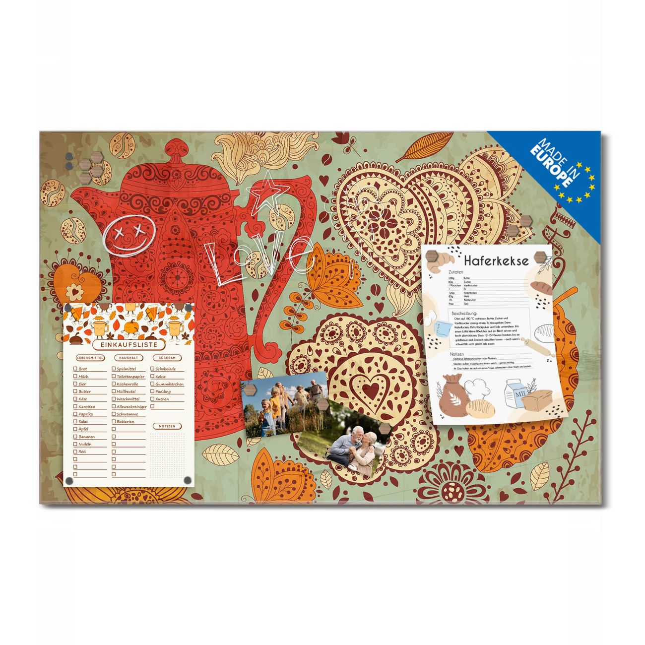 Ein Stück Design, das Ihren Alltag organisiert. Schreiben, heften, inspirieren - alles an einem Ort. Qualität, die man spürt. Montage leicht gemacht. Handwerk mit Herz - veredelt in Sachsen. Einzigartiges Design mit Motiv Motiv Indischer Kaffee Beschreibbare Glasoberfläche, leicht zu reinigen Starke Magnetkraft durch Stahlrückwand Inklusive 4 Neodym-Magneten Flexible Montageoptionen Handveredelt in Sachsen - Qualität, die bleibt