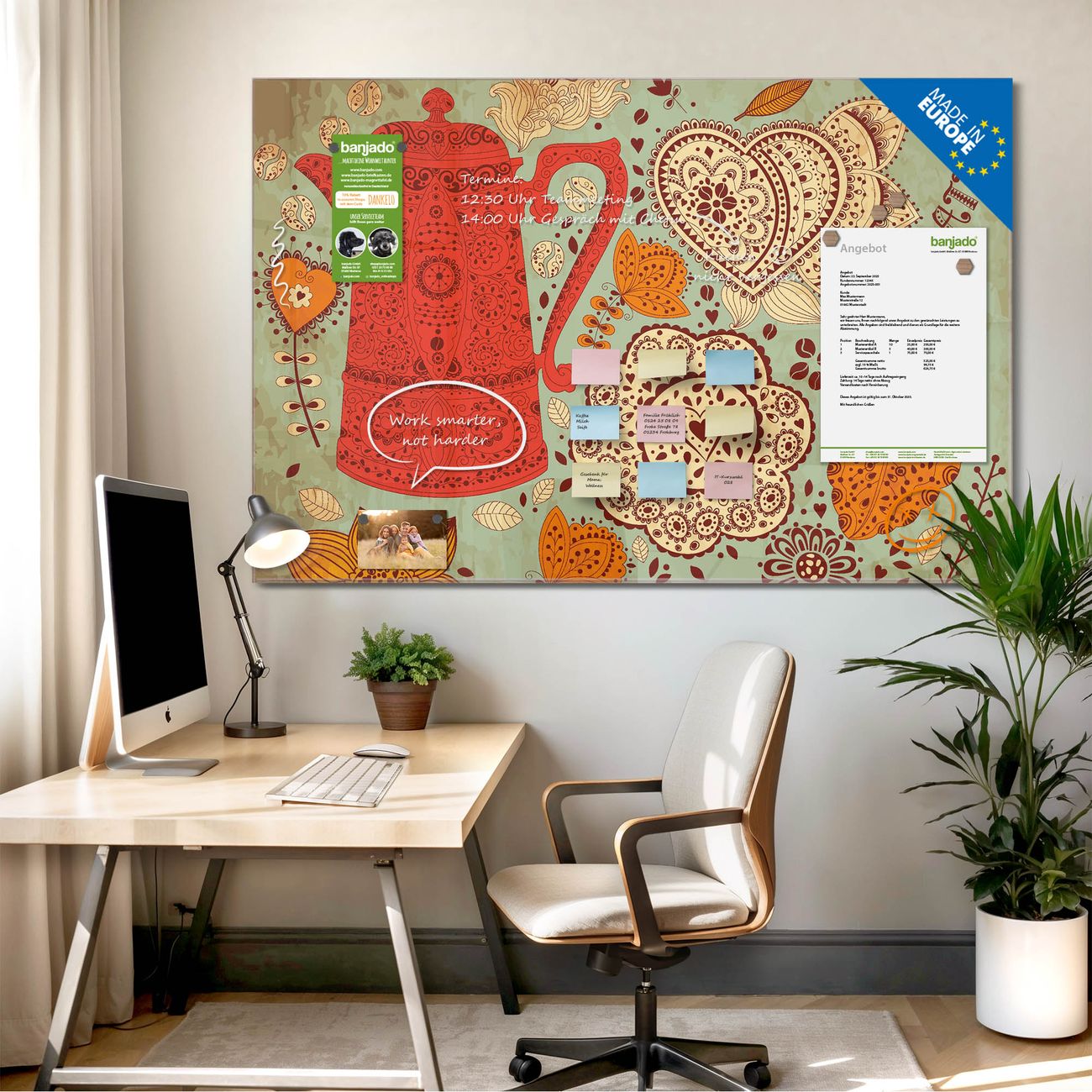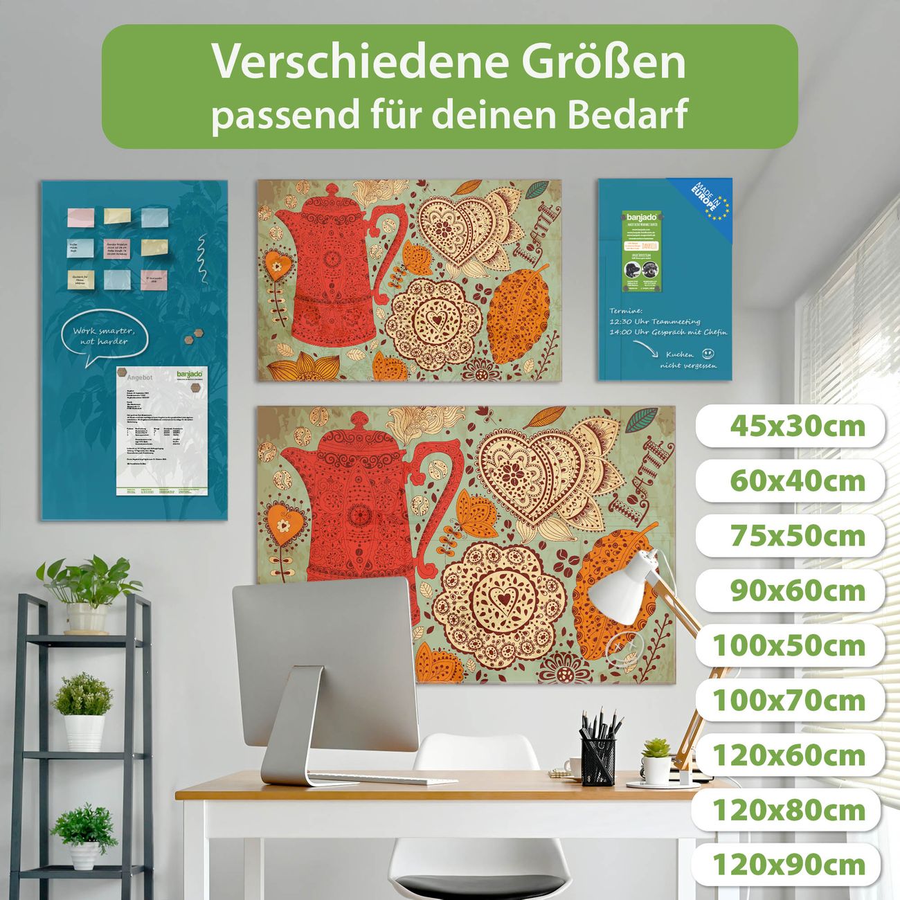 Jede Glas Magnettafel wird in unserer Werkstatt von Hand gefertigt und sorgfältig geprüft. So erhalten Sie ein echtes Qualitätsprodukt, das Funktion und Ästhetik perfekt vereint.?? Warum banjado?