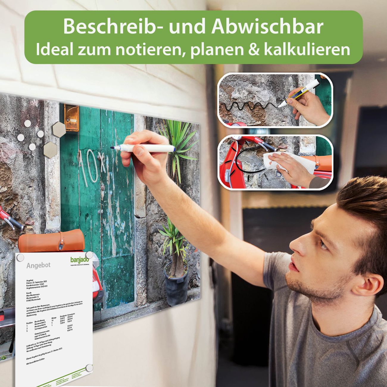 Jede Glas Magnettafel wird in unserer Werkstatt von Hand gefertigt und sorgfältig geprüft. So erhalten Sie ein echtes Qualitätsprodukt, das Funktion und Ästhetik perfekt vereint.?? Warum banjado?