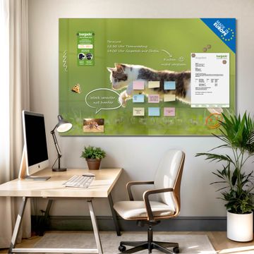 Die banjado Glas Magnettafel mit dem Motiv Motiv Jagende Katze verbindet Funktionalität mit Stil. Sie ersetzt das Zettelchaos durch klare Strukturen und bringt dabei eine warme, natürliche Atmosphäre in Ihr Zuhause. Ob im Büro, in der Küche oder im Eingangsbereich - dieses Design-Board zieht Blicke an und sorgt für Ordnung mit Charakter.