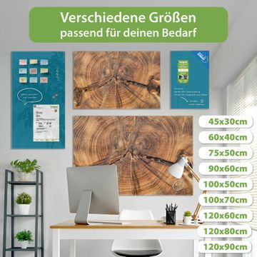 Die banjado Glas Magnettafel mit dem Motiv Motiv Jahresringe verbindet Funktionalität mit Stil. Sie ersetzt das Zettelchaos durch klare Strukturen und bringt dabei eine warme, natürliche Atmosphäre in Ihr Zuhause. Ob im Büro, in der Küche oder im Eingangsbereich - dieses Design-Board zieht Blicke an und sorgt für Ordnung mit Charakter.