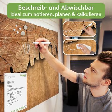 Die banjado Glas Magnettafel mit dem Motiv Motiv Baumscheibe verbindet Funktionalität mit Stil. Sie ersetzt das Zettelchaos durch klare Strukturen und bringt dabei eine warme, natürliche Atmosphäre in Ihr Zuhause. Ob im Büro, in der Küche oder im Eingangsbereich - dieses Design-Board zieht Blicke an und sorgt für Ordnung mit Charakter.