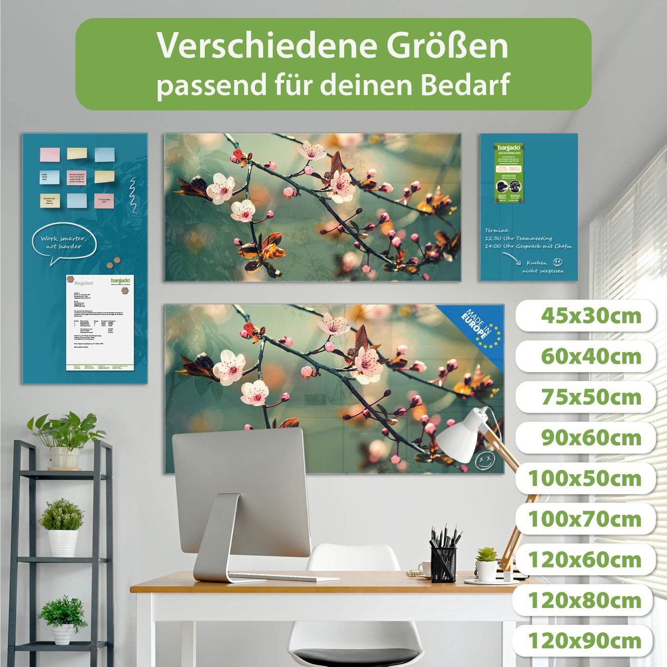 Die banjado Glas Magnettafel mit dem Motiv Motiv Japankirsche verbindet Funktionalität mit Stil. Sie ersetzt das Zettelchaos durch klare Strukturen und bringt dabei eine warme, natürliche Atmosphäre in Ihr Zuhause. Ob im Büro, in der Küche oder im Eingangsbereich - dieses Design-Board zieht Blicke an und sorgt für Ordnung mit Charakter.