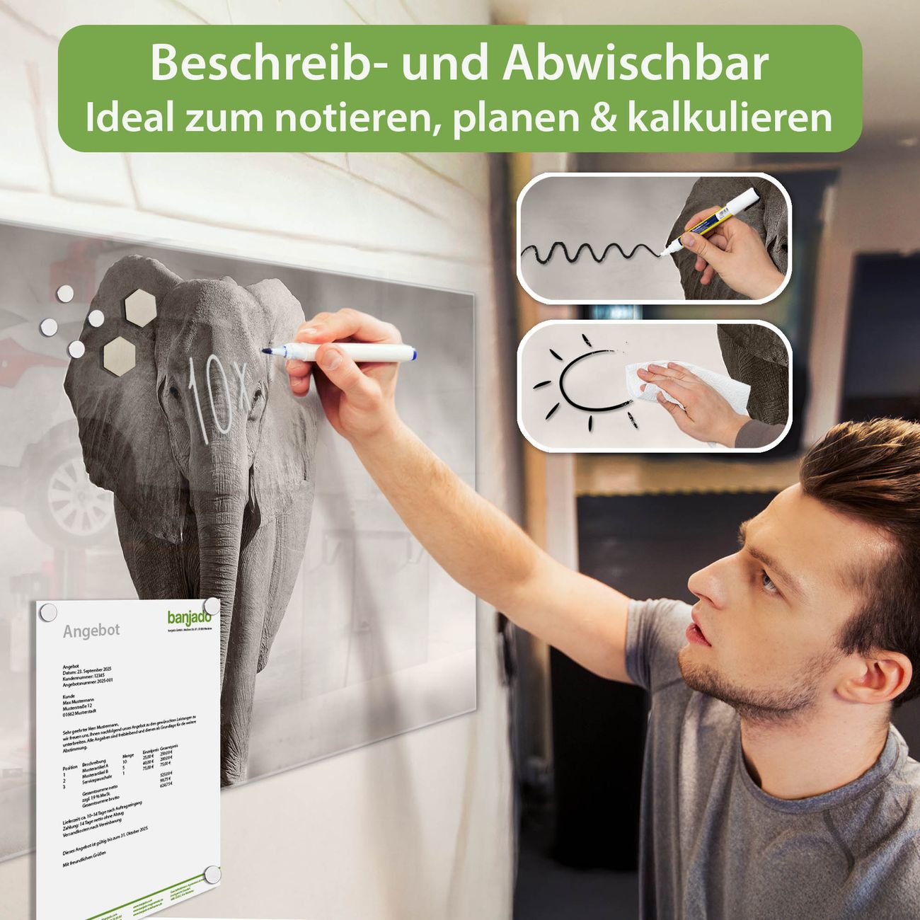 Bitte beachten Sie, dass ausschliessliche spezielle Magnete an der Glastafel haften. Wir empfehlen banjado Neodym Magnete, diese sind durch uns auf Wirksamkeit geprüft.