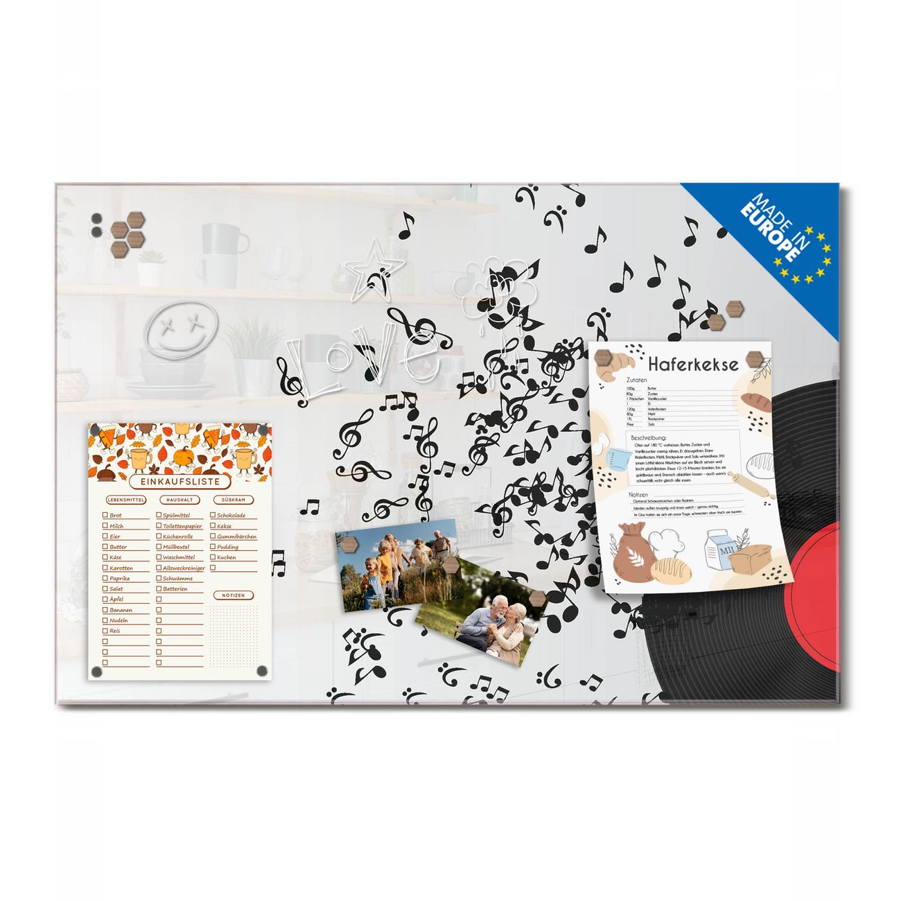 Ein Stück Design, das Ihren Alltag organisiert. Schreiben, heften, inspirieren - alles an einem Ort. Qualität, die man spürt. Montage leicht gemacht. Handwerk mit Herz - veredelt in Sachsen. Einzigartiges Design mit Motiv Motiv Juke Box Beschreibbare Glasoberfläche, leicht zu reinigen Starke Magnetkraft durch Stahlrückwand Inklusive 4 Neodym-Magneten Flexible Montageoptionen Handveredelt in Sachsen - Qualität, die bleibt