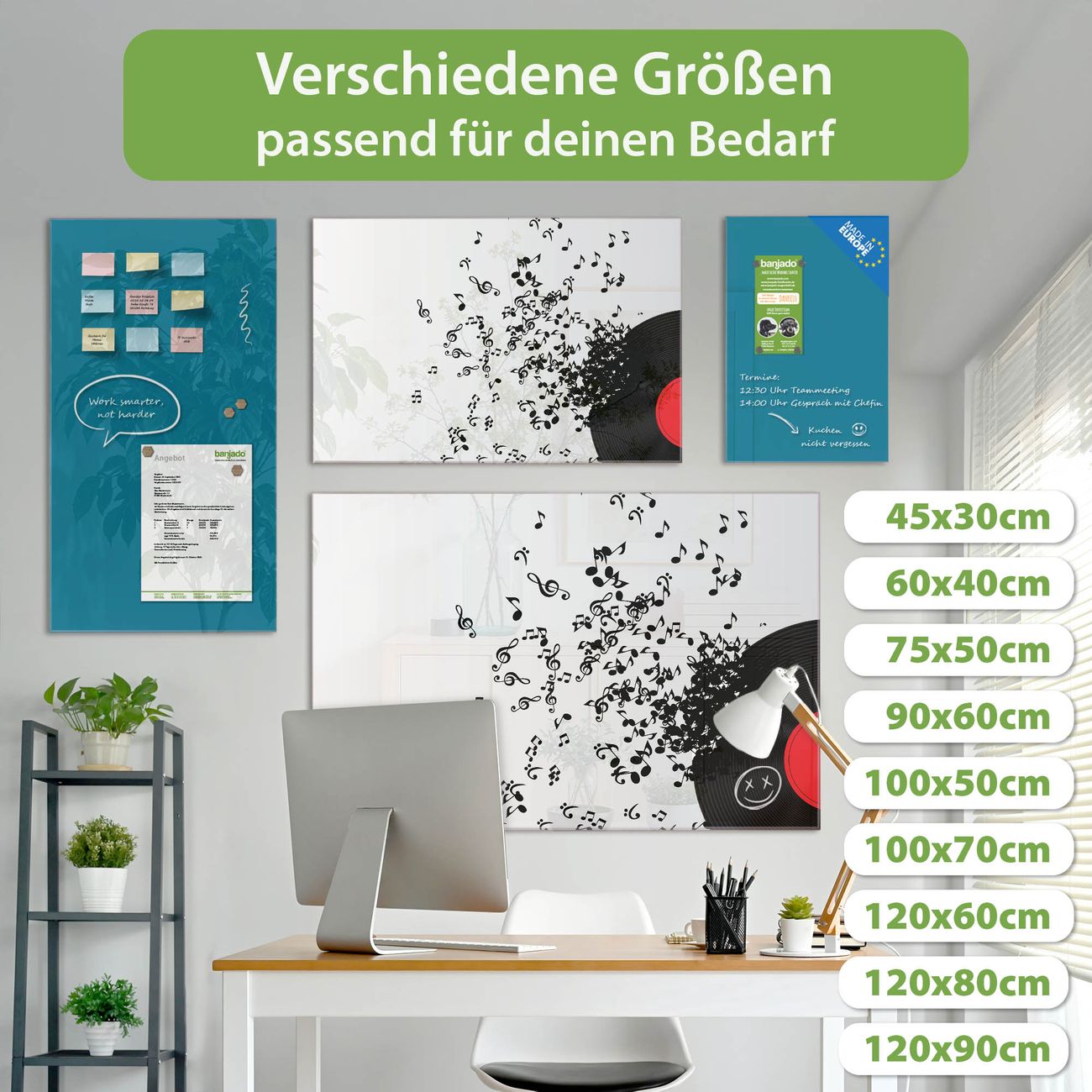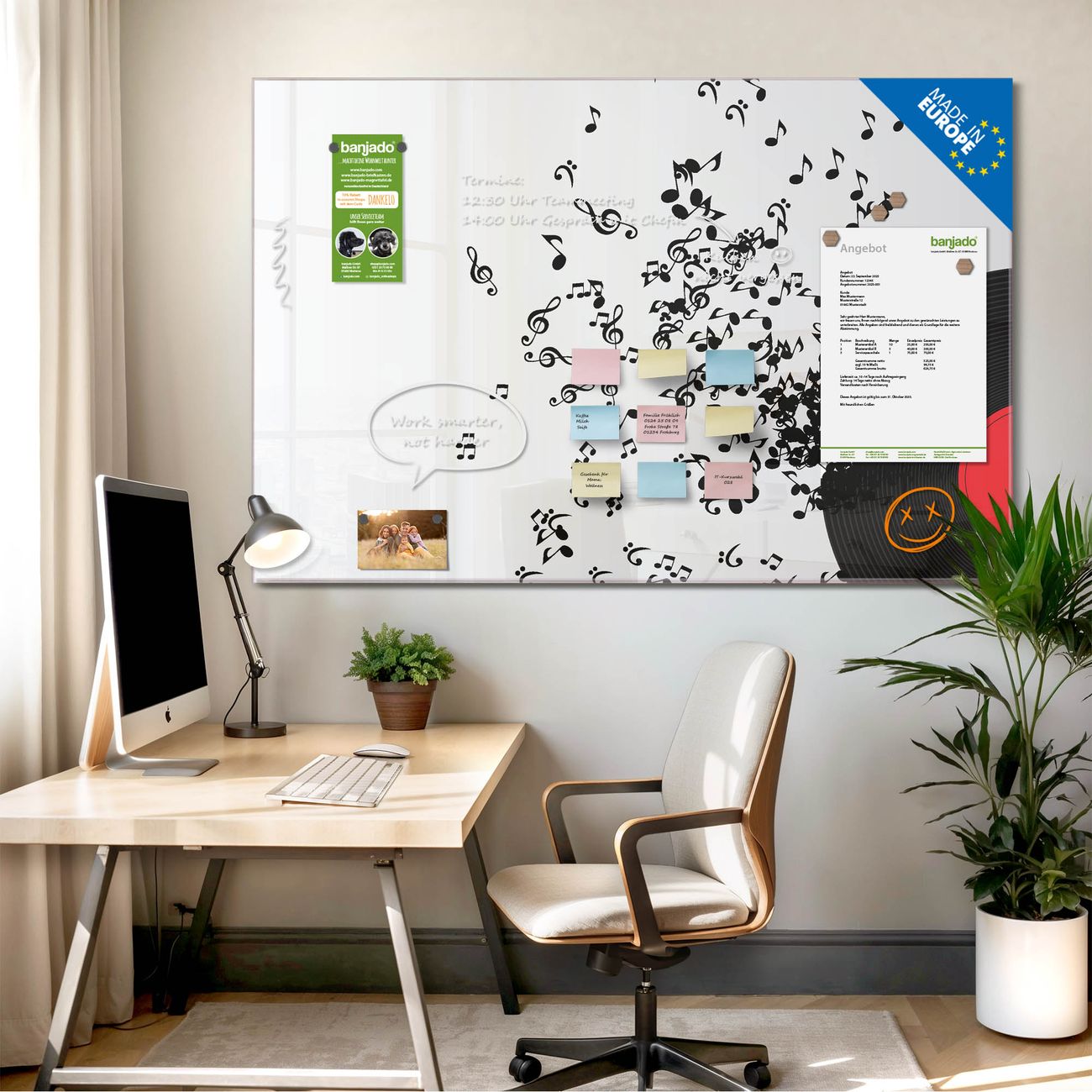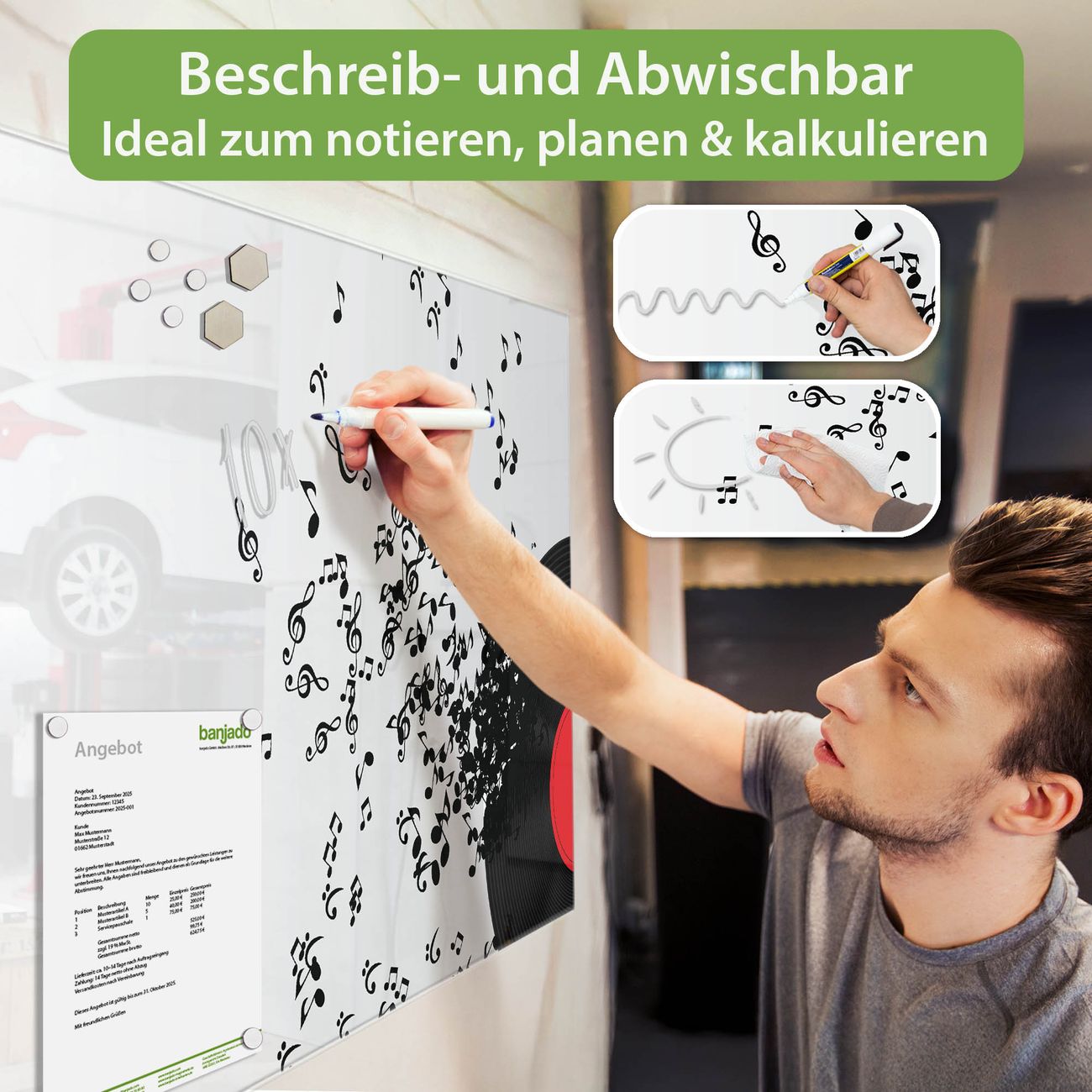 Jede Glas Magnettafel wird in unserer Werkstatt von Hand gefertigt und sorgfältig geprüft. So erhalten Sie ein echtes Qualitätsprodukt, das Funktion und Ästhetik perfekt vereint.?? Warum banjado?