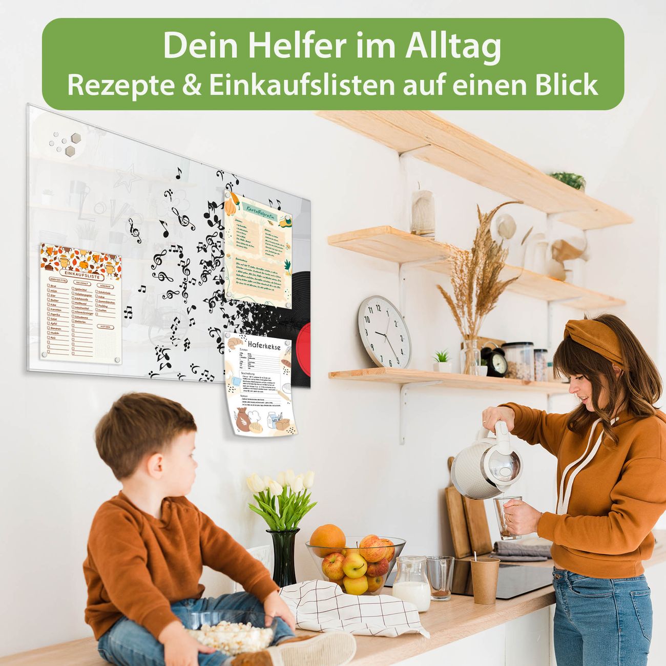 Auf der glatten Glasoberfläche lassen sich Termine, Rezepte oder Notizen ganz einfach mit Kreidestiften festhalten und rückstandslos entfernen. Starke Neodym-Magnete halten Ihre wichtigsten Erinnerungen sicher an Ort und Stelle. So entsteht Ihre ganz persönliche Ideenwand - jeden Tag neu.