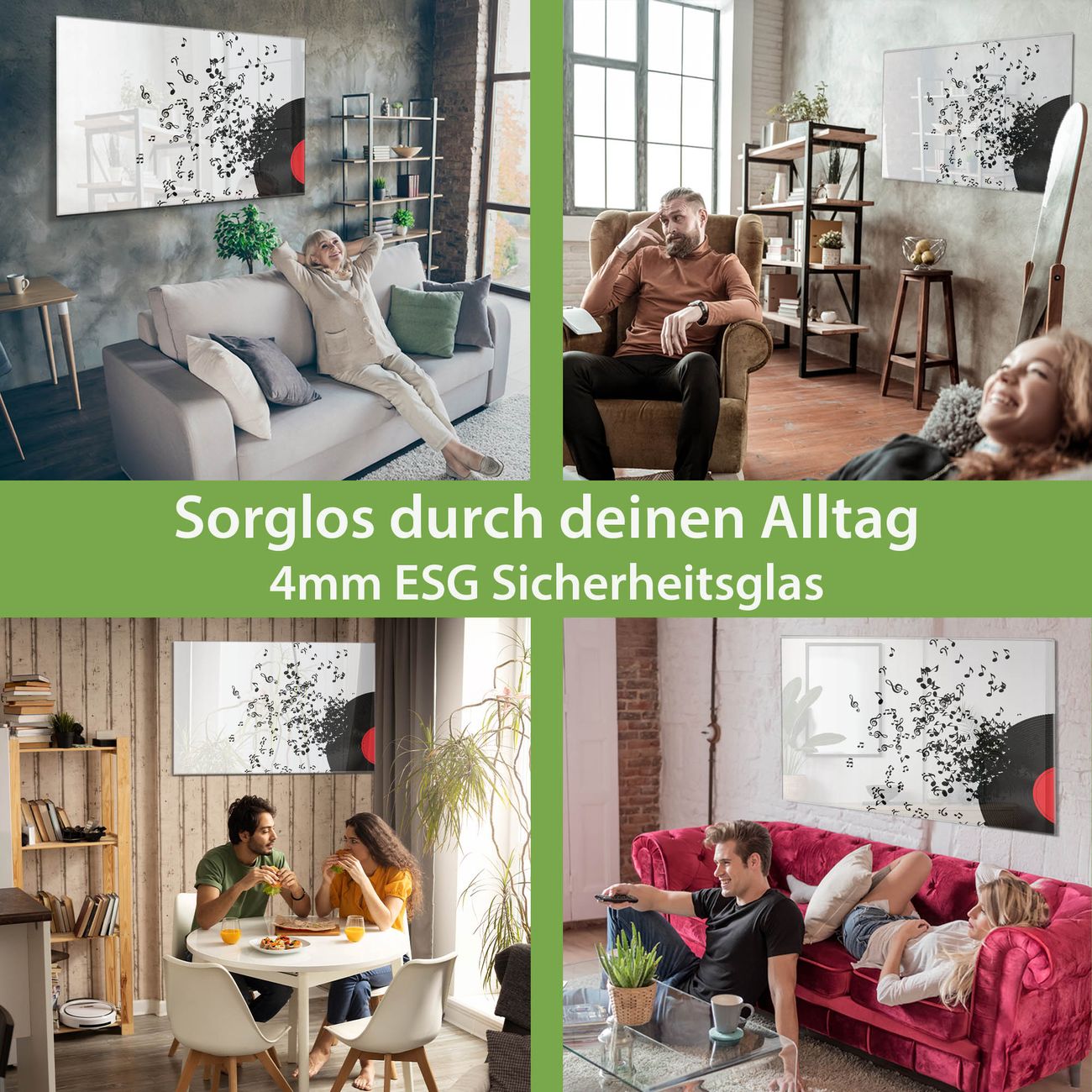 - Material: 4mm Sicherheitsglas mit Metallrückwand