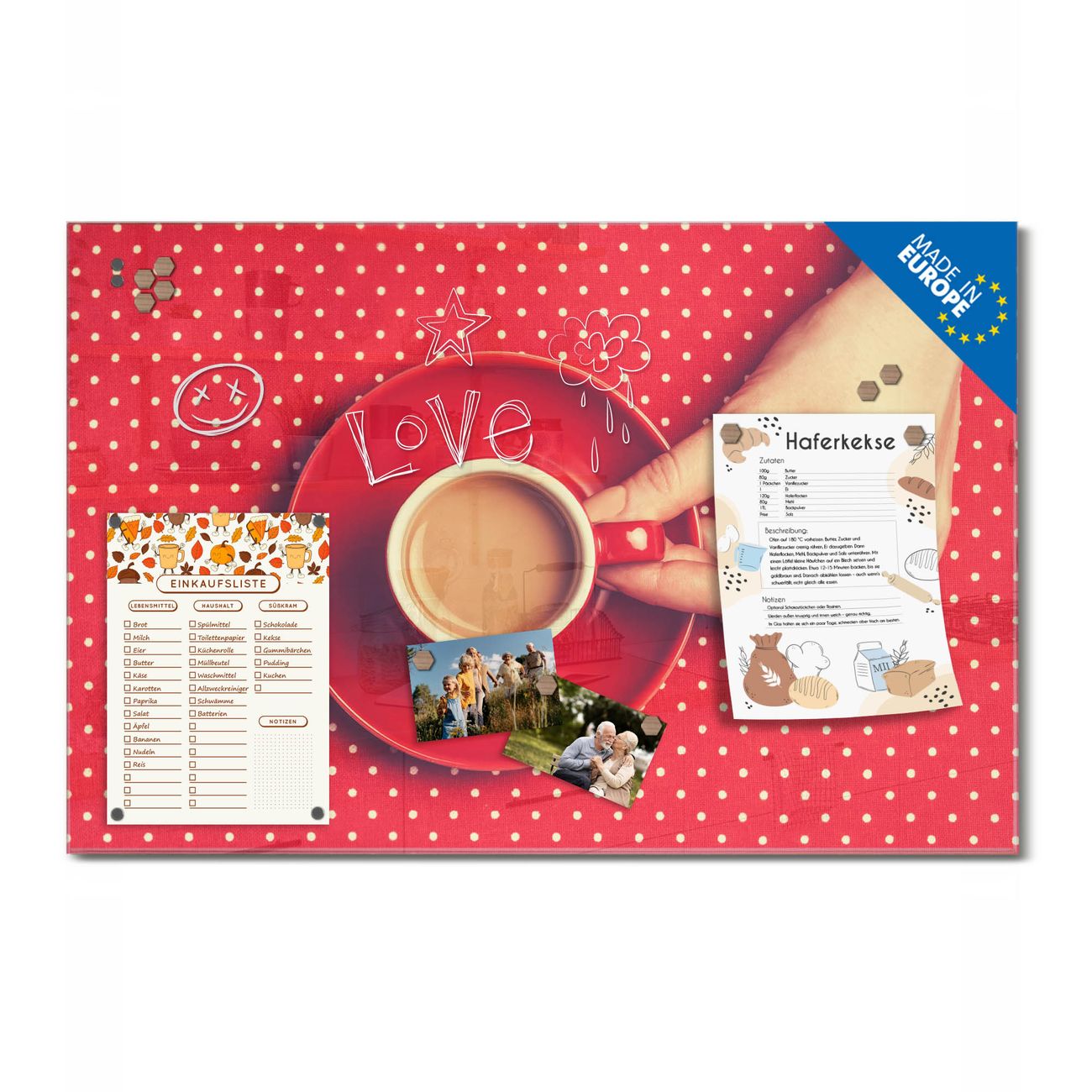 Glas Magnettafel im Querformat Motiv Kaffee Rot Weiss