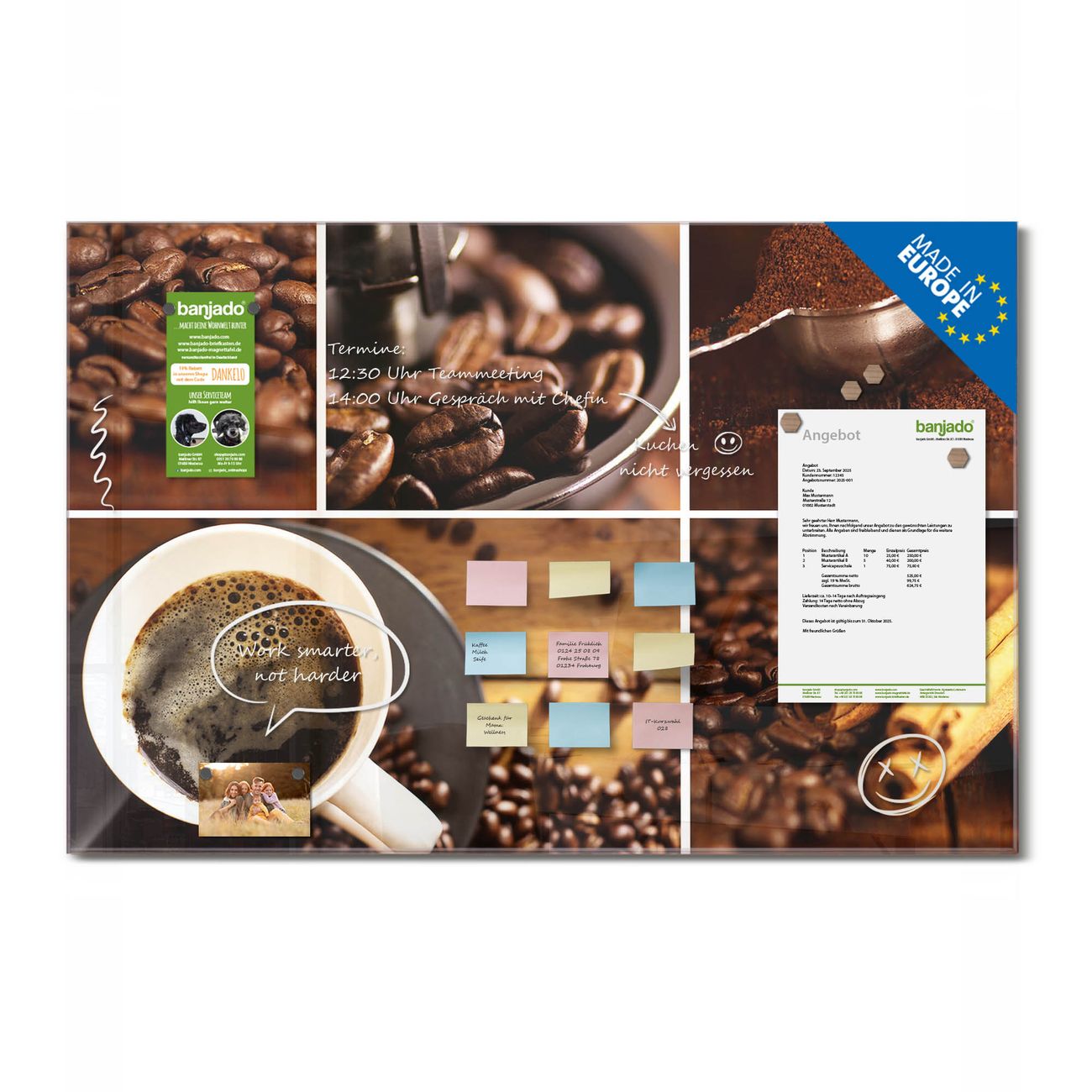 Die banjado Glas Magnettafel mit dem Motiv Motiv Kaffee&Schokolade verbindet Funktionalität mit Stil. Sie ersetzt das Zettelchaos durch klare Strukturen und bringt dabei eine warme, natürliche Atmosphäre in Ihr Zuhause. Ob im Büro, in der Küche oder im Eingangsbereich - dieses Design-Board zieht Blicke an und sorgt für Ordnung mit Charakter.